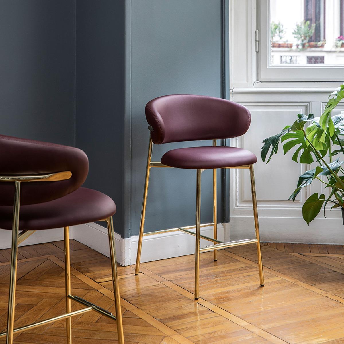 I’m a big fan of the Oleandro stool for its slim brass legs and softly curved, purple seat - it brings just enough warmth without overwhelming a scheme. The leather-effect cover is wipe-clean and hard-wearing, so it works brilliantly in a busy kitchen or open-plan breakfast bar. Styling tip: pair it with warm timber worktops or a marble island to balance the metallic base, and introduce mixed-metal accessories (think brass pendant lights or copper canisters) for a cohesive look. It also complements mid-century and contemporary interiors, adding a splash of rich colour without fuss.