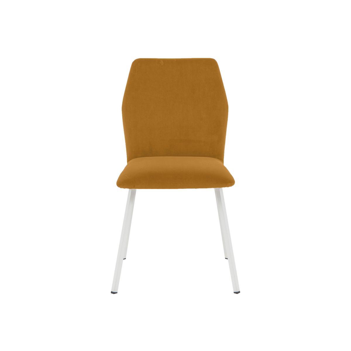 I love this chair for its modern, geometric design and warm, inviting colour. It’s a versatile piece that works well in contemporary dining rooms or even as an accent in eclectic or Scandinavian interiors. The fabric offers comfort while the clean lines and hexagonal shape add visual interest. For styling tips, consider pairing it with a sleek dining table in wood or light-toned stone to balance its look. You could also use multiple colours or fabric variations to create a playful, coordinated setting. Its structural simplicity makes it easy to incorporate into various decor styles, from minimalist to more cosy, layered schemes.