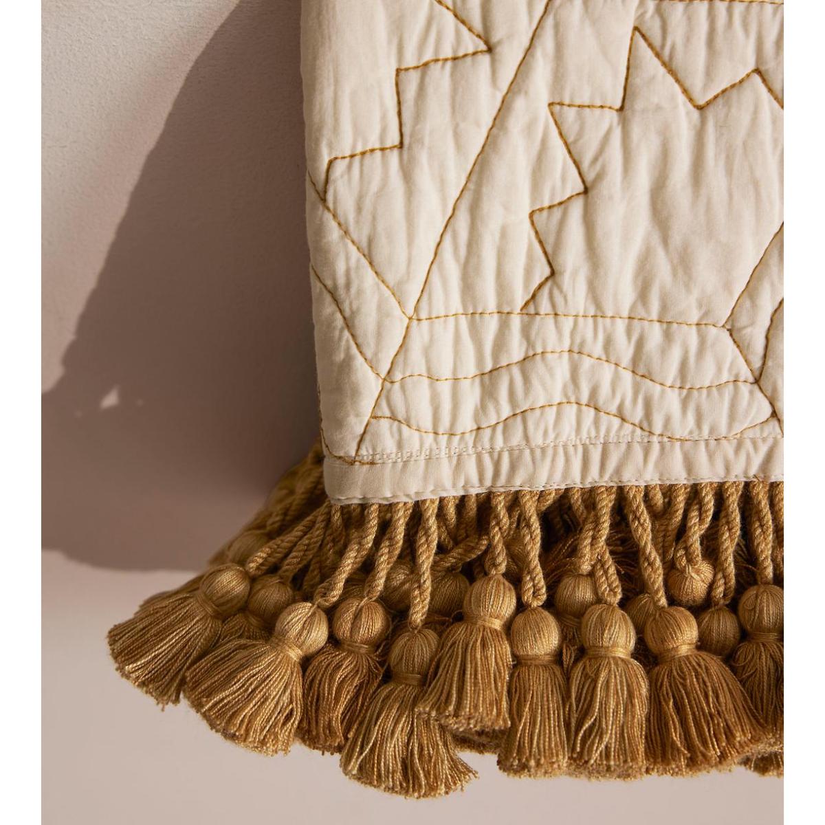 Our quilted Callington bedspread features light beige geometric embroidery as a subtle way of introducing pattern in the bedroom, while mirroring similar styles seen in Soho House Paris and Kettner's. An ochre fringed trim elevates this design with a complementing pop of colour and refinement. Available in three sizes, use as an instant layer for adding extra warmth and cosiness. Quilted bedspread All-over light beige geometric embroidery Ochre fringed trim Available in three sizes Inspired by styles seen in the bedrooms at Soho House Paris and Kettner's