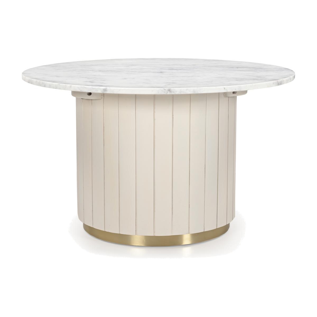 Add a taste of luxury to the centre of your living space with the Calliope Coffee Table, the perfect addition to any modern and contemporary room. The stunning white marble tabletop oozes quality and sophistication, finished with a white mango wood base and classy brass strip, showcasing the importance of those extra details. The round shape of the White Calliope Coffee Table will soften the structure of your living area, creating an open and inviting atmosphere for family to gather in.