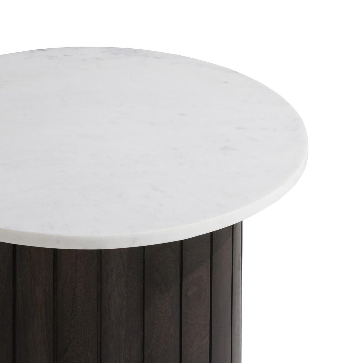 If a look that is unique and attention-grabbing is your taste, the Calliope End Table is certain to be the next addition to your living space. The unusual yet complimentary pairing of the quality white marble tabletop and stunning dark mango wood base, effortlessly creates a look of luxury. The Dark Wood Calliope End Table is tied together with a stunning brass strip around the base.