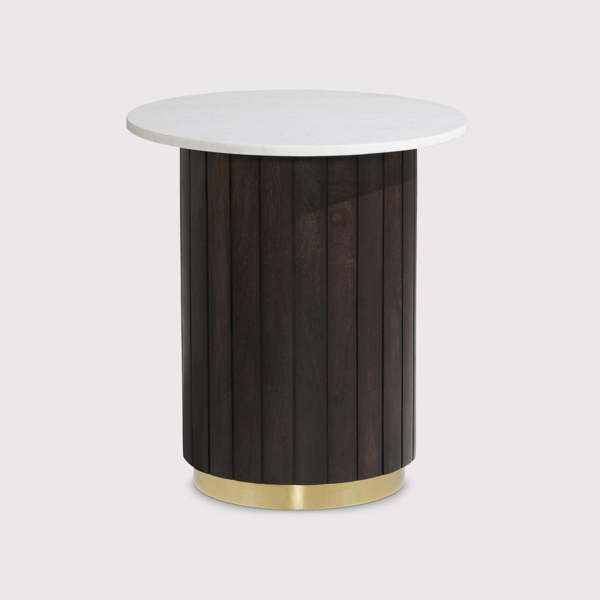 I’m a fan of the Calliope side table for its mix of a crisp white marble top, fluted dark-wood base and subtle brass trim - it instantly lifts a space without shouting for attention. It works equally well in contemporary, Scandinavian or modern-luxe schemes, pairing beautifully with neutral palettes or richer jewel tones. Styling-wise, keep it simple: a low ceramic lamp offset by a small stack of art books or a minimal vase of foliage. Its 50cm diameter makes it perfect beside a sofa in a snug living room or as a compact bedside table where you can still fit a bedside lamp and your evening read.