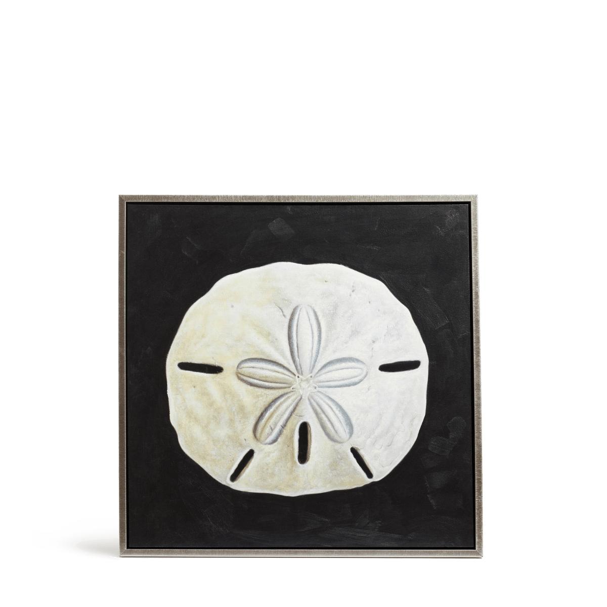 For high-realism wall art, look no further than our Calliope Sand Dollar Oil Painting, digitally printed onto canvas before being finished by hand with oil paints. White sand dollars are the skeletons of a species of sea urchin; their façade features a starlike pattern in its centre. The high-contrast black and white results in a striking piece for your walls.