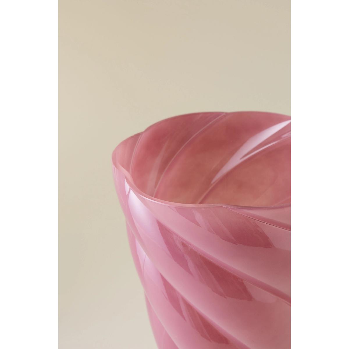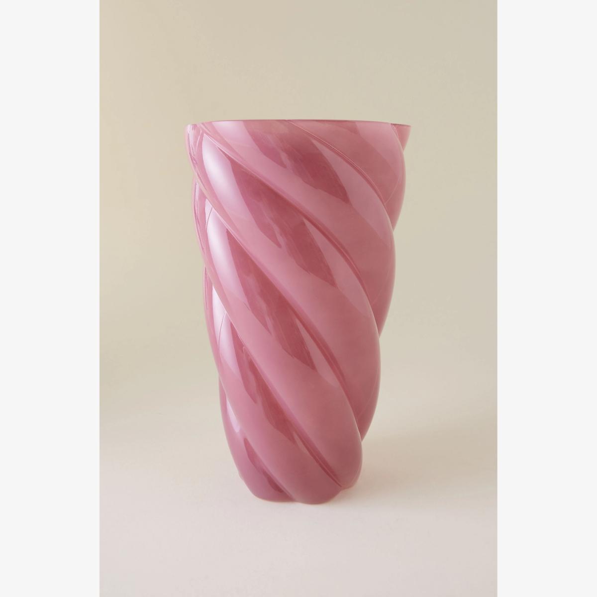 I love this callo vase for its sculptural shape and soft pink hue, which makes it a versatile piece for various interiors. Its mouth-blown glass construction adds a handcrafted quality, making it both elegant and unique. It works particularly well in contemporary or minimalist spaces, where its swirl design can become a statement feature, but it can also add a touch of colour to more eclectic settings. For styling, I suggest filling it with fresh or dried blooms to complement its colour, or how about using it as a standalone piece on a mantel or side table? Its generous shape is perfect for showcasing a striking bouquet or simply standing on its own to add a pop of colour and texture.