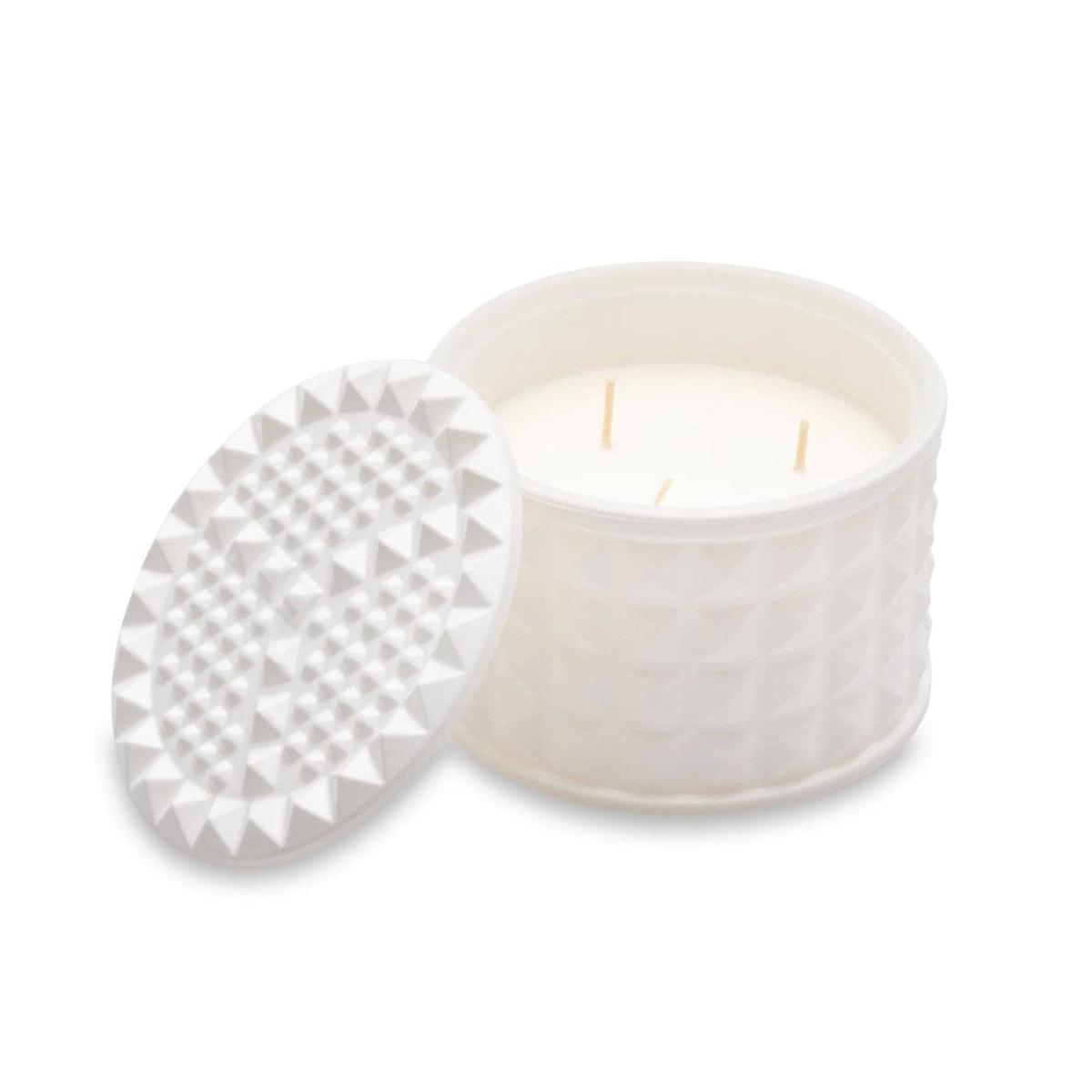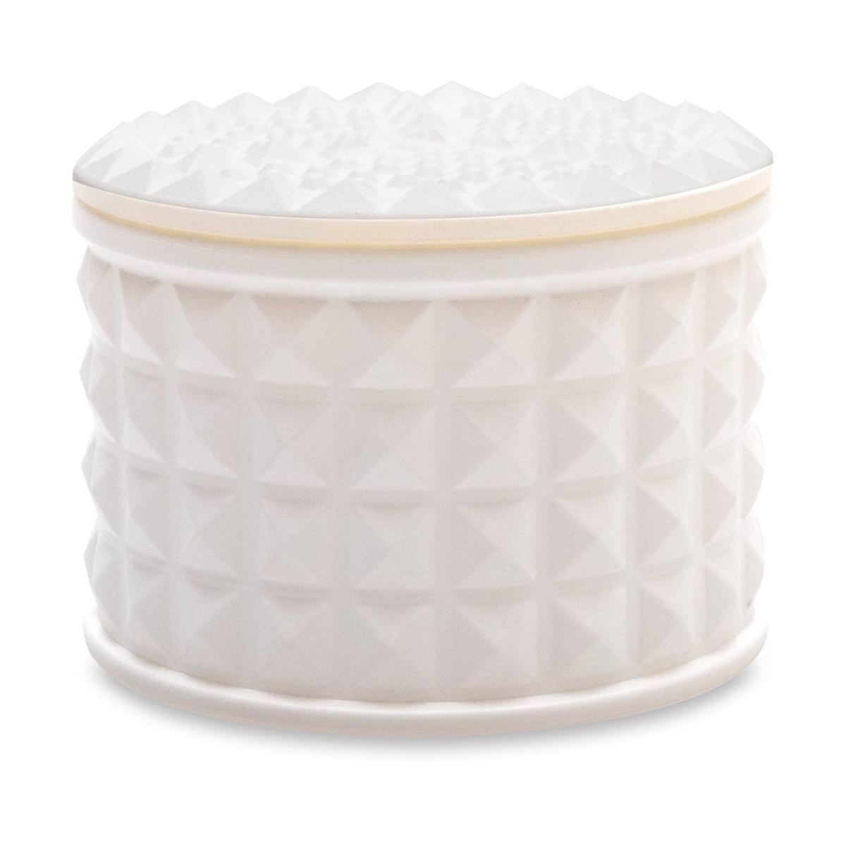 An intense fruity harmony of bergamot and coconut on a warm base of tonka beans and vanilla. In a White hand-crafted glass jar with lid, and made from natural soy wax.