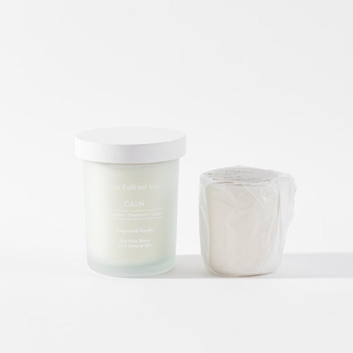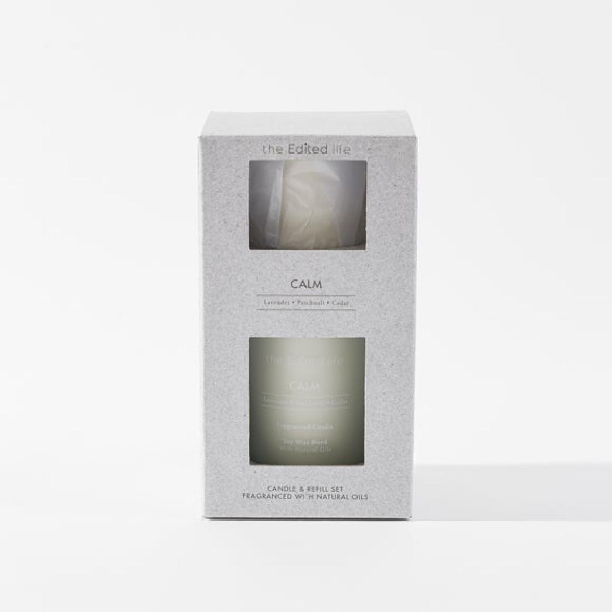 The Edited Life - Calm Candle & Refill Gift Set * Candle and refill set * Calm scent * Lasts up to 40 hours Presenting the Calm Candle & Refill Gift Set, a lovely gift for yourself or a loved one. This set includes an Edited Life candle and a candle refill in our serene Calm fragrance. Let aromatic lavender, grounding patchouli, and the soft strength of cedarwood wash over you, creating a truly peaceful atmosphere. The refill is designed for use with an Edited Life candle vessel, and should not be burned on its own. Live well. Mean well. Be well. Many of us want to live simpler, more responsible lives. As we become more aware of our surroundings and understand how our choices contribute to the world around us, more people are choosing to consume less and curate more. The Edited Life introduces a new era of thoughtfulness in the home, with an understated collection of pieces chosen for their simple beauty, quality craftsmanship and innate usefulness that will last beyond any trend. Having it all is no longer the goal; having enough, and it being just right, is.
