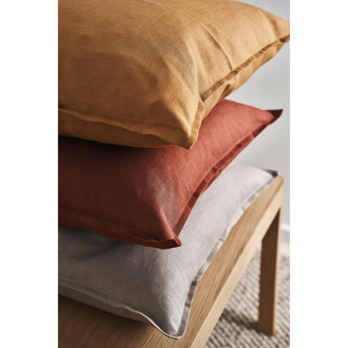 I love this cushion cover for its rich, earthy rust tone which adds warmth and depth to any space. The linen material gives it a relaxed yet sophisticated vibe, making it versatile enough to work well in both Scandinavian minimal interiors and cozier, organic settings. It pairs beautifully with neutral and textured fabrics, so try combining it with soft wool throws or boucle accessories for a layered look. Practical styling tips include using it as a statement piece on a neutral sofa or blending into a mix of muted cushions for a curated, but understated feel. Its size makes it ideal for a lounge chair or bed, where it can quickly elevate the overall aesthetic.