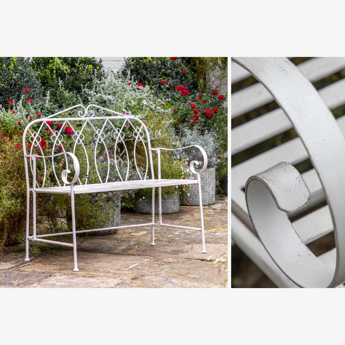 Escape the daily grind to the calm of your garden. Crafted in hard-wearing metal with country chic details this is the perfect spot to relax in the sunshine. For extra comfort add a scattering outdoor cushions.