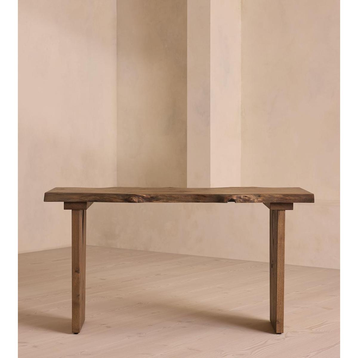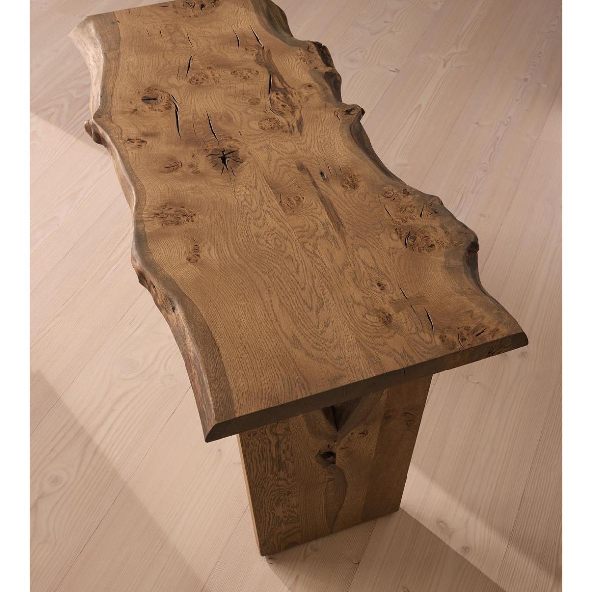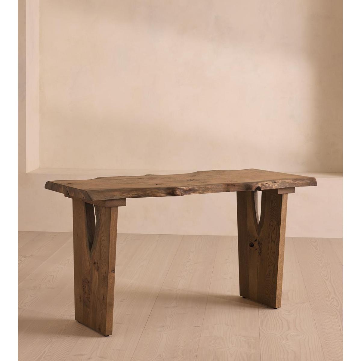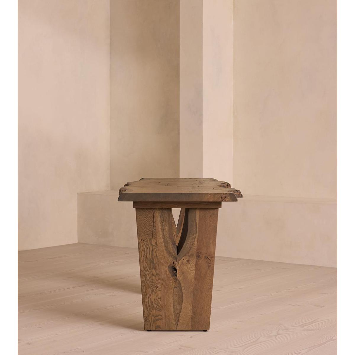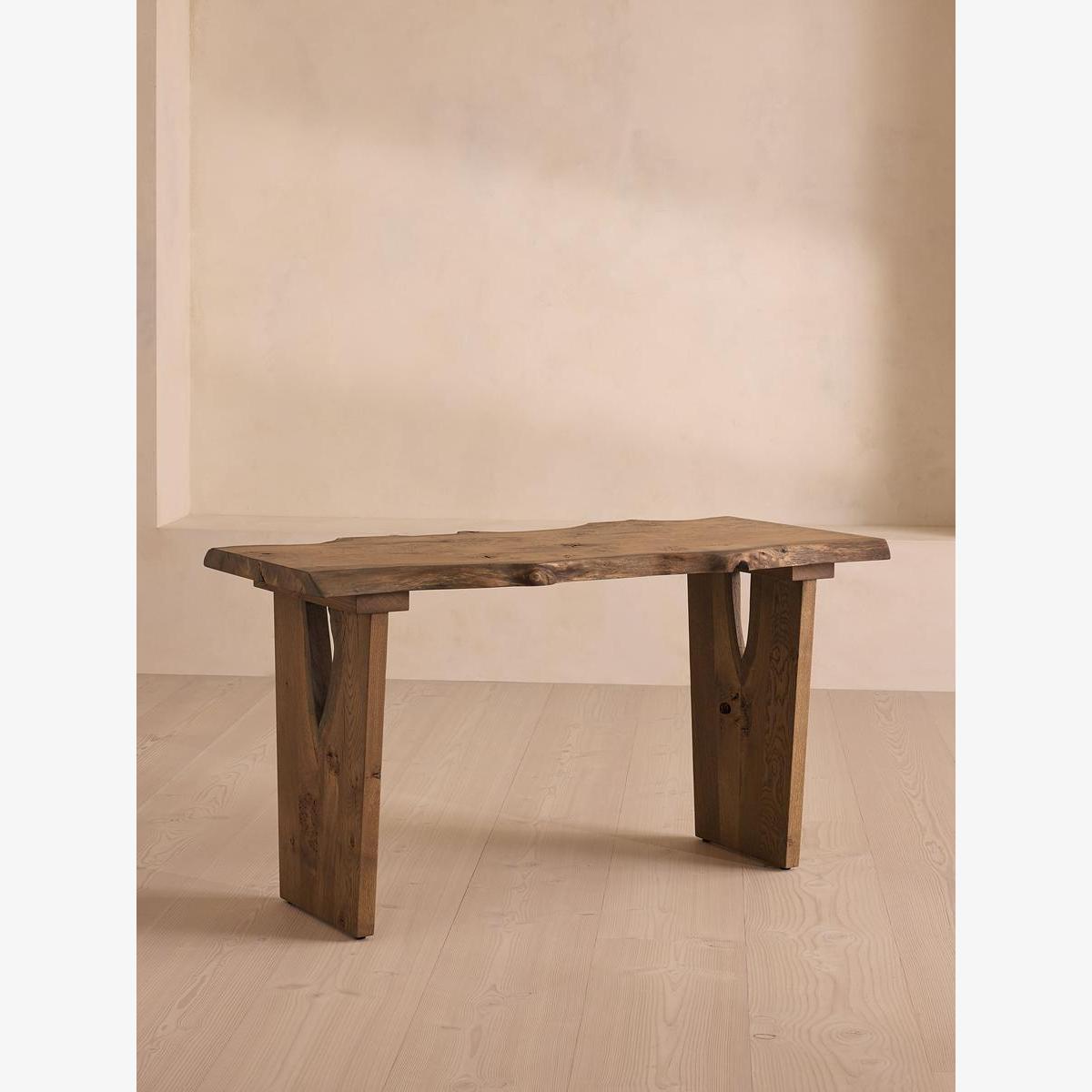 An heirloom piece built from aged oak with a unique live edge and natural knots. Inspired by the rustic interiors of Soho Farmhouse, the Calne desk is built to last a lifetime. Made in the UK from British Pippy oak, its solid silhouette is characterised by an unfinished edge, alongside natural knots and cracks that give every piece a one-of-a-kind finish.