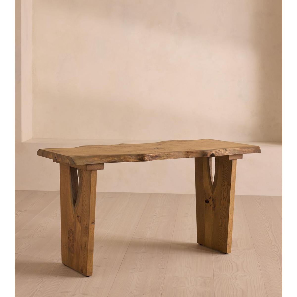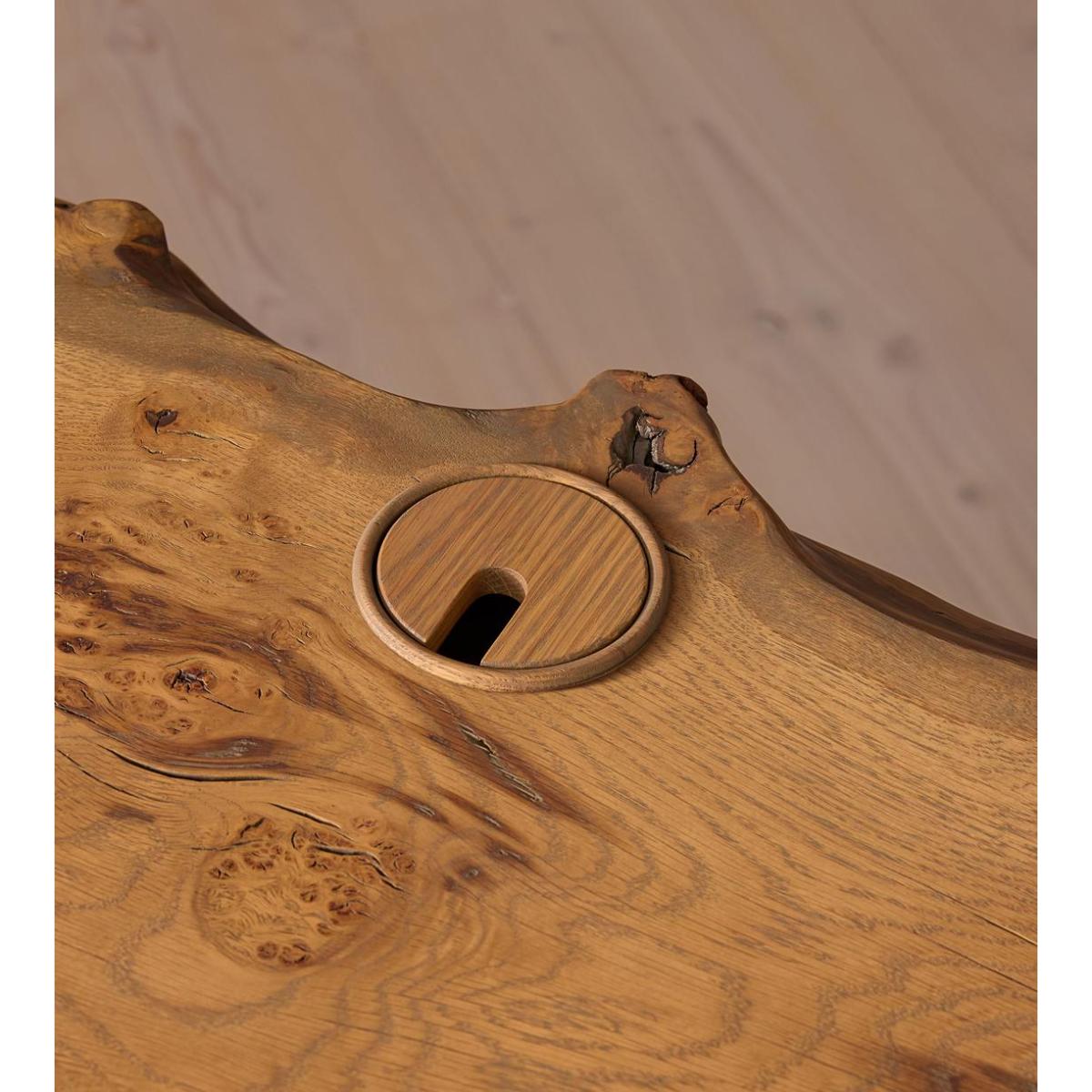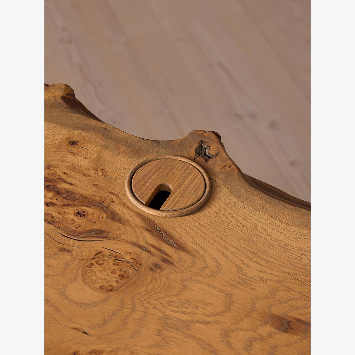 An heirloom piece built from golden oak with a unique live edge and natural knots. Inspired by the rustic interiors of Soho Farmhouse, the Calne desk is built to last a lifetime. Made in the UK from British Pippy oak, its solid silhouette is characterised by an unfinished edge, alongside natural knots and cracks that give every piece a one-of-a-kind finish. A cable-management grommet can be placed on the left, right or in the centre to keep your workspace in order.