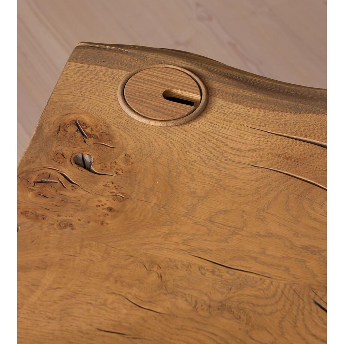An heirloom piece built from golden oak with a unique live edge and natural knots. Inspired by the rustic interiors of Soho Farmhouse, the Calne desk is built to last a lifetime. Made in the UK from British Pippy oak, its solid silhouette is characterised by an unfinished edge, alongside natural knots and cracks that give every piece a one-of-a-kind finish. A cable-management grommet can be placed on the left, right or in the centre to keep your workspace in order.