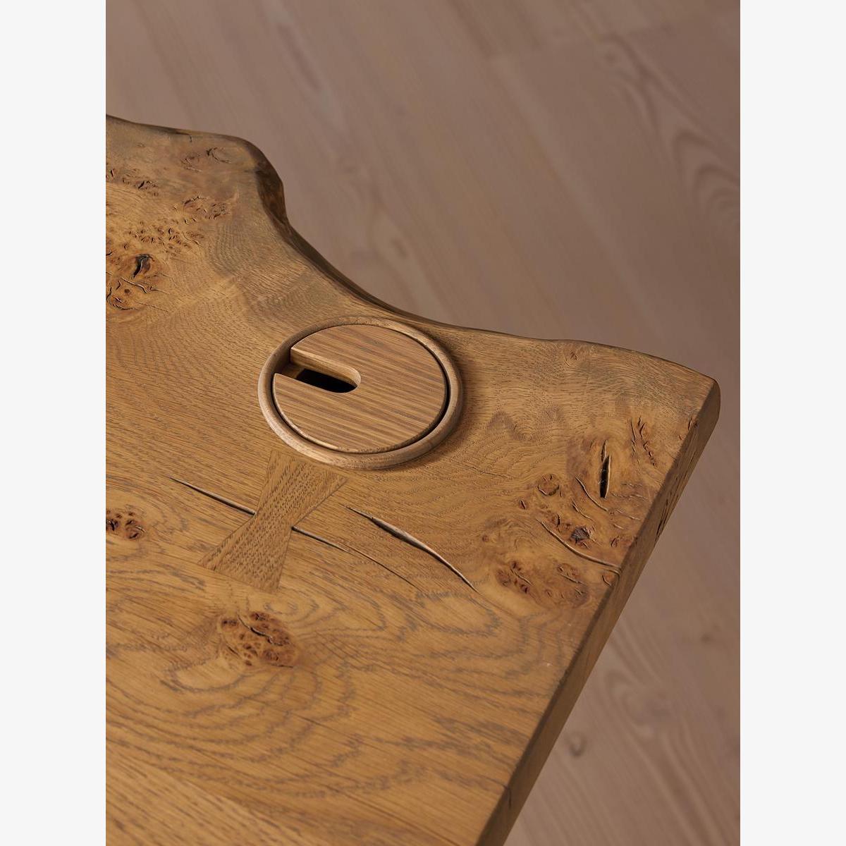An heirloom piece built from golden oak with a unique live edge and natural knots. Inspired by the rustic interiors of Soho Farmhouse, the Calne desk is built to last a lifetime. Made in the UK from British Pippy oak, its solid silhouette is characterised by an unfinished edge, alongside natural knots and cracks that give every piece a one-of-a-kind finish. A cable-management grommet can be placed on the left, right or in the centre to keep your workspace in order.