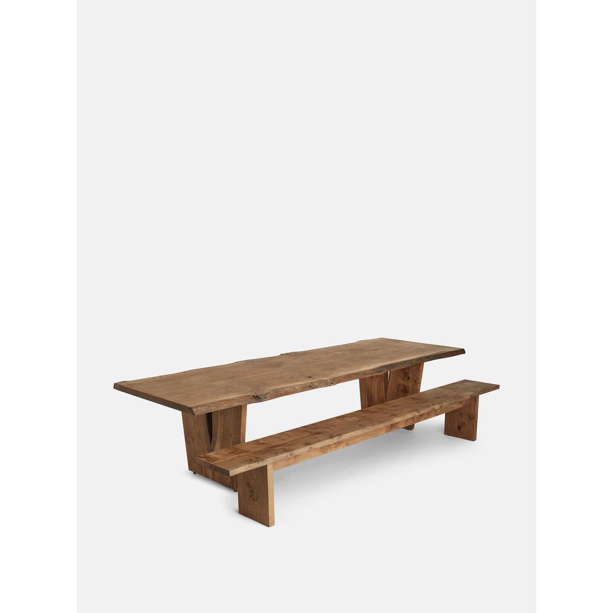 Built to last a lifetime and serve generations to come, the Calne dining table is carved from premium British Pippy oak, with acharacteristic live edge. The chunky heirloom piece is inspired bybiophilic design, a concept that connects people to nature. Visibleknots and cracks are featured throughout and considered charmingfeatures of natural timber. Place it in the centre of a dining roomto recreate the rustic settings at Soho Farmhouse. Solid British Pippy oak dining table. Biophilic design. Live edge detail. Bow tie detail. Visible knots and cracks. Each table is unique; no two pieces are exactly alike. Seats eight to 10 people. Available to order in different sizes and wood stains. Inspired by Soho Farmhouse.