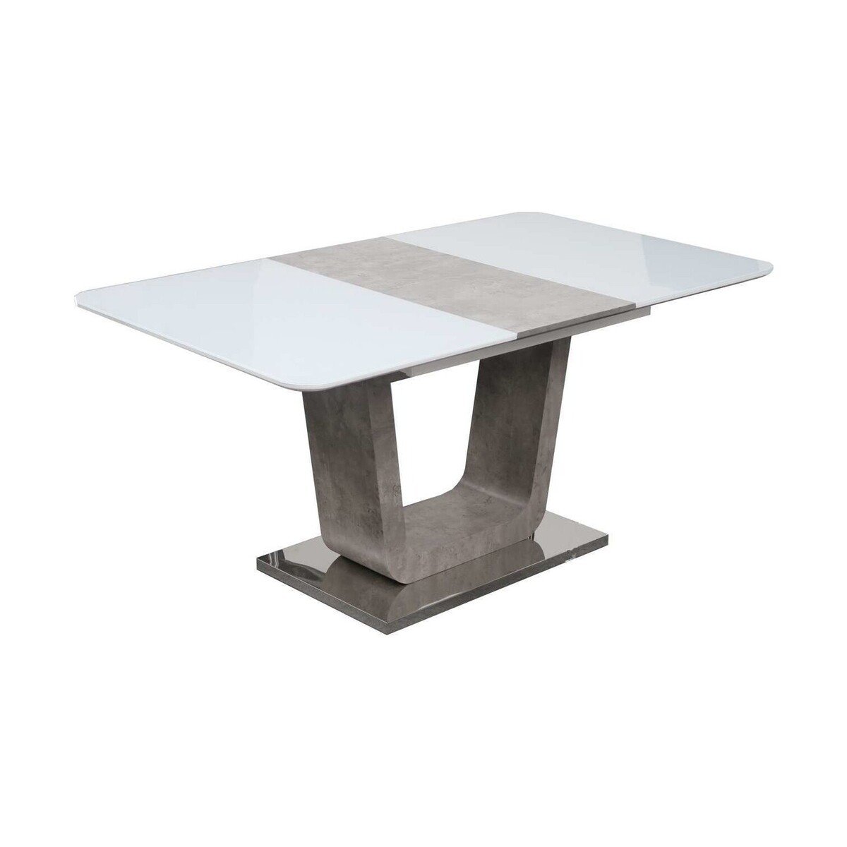 The Calverton extending 120cm dining table is a unique piece of furniture with a contemporary design. This dining table has a bold and sleek look, complete with a white top and a natural clay coloured pedestal. It has a practical extension feature that creates space to seat 6 people. The Calverton extending 120 cm dining table is sturdy, elegant and incredibly functional, and will be a stunning addition to your dining room. A sturdy and stylish dining table with a bold and elegant design. Contemporary design blends a natural clay coloured pedestal with a white tempered glass top. 120 cm long in its standard position, comfortably seating 4 people. Extends to 160 cm to fit 6 people, changing your dining room from an intimate setting to accommodate larger parties. Butterfly extending mechanism allows for seamless and effortless extending action. Stainless steel base. Fixed dining table and an extending 160cm dining table also available. Clean, easy-wipe finish for effortless maintenance. Look out for more items from this collection.
