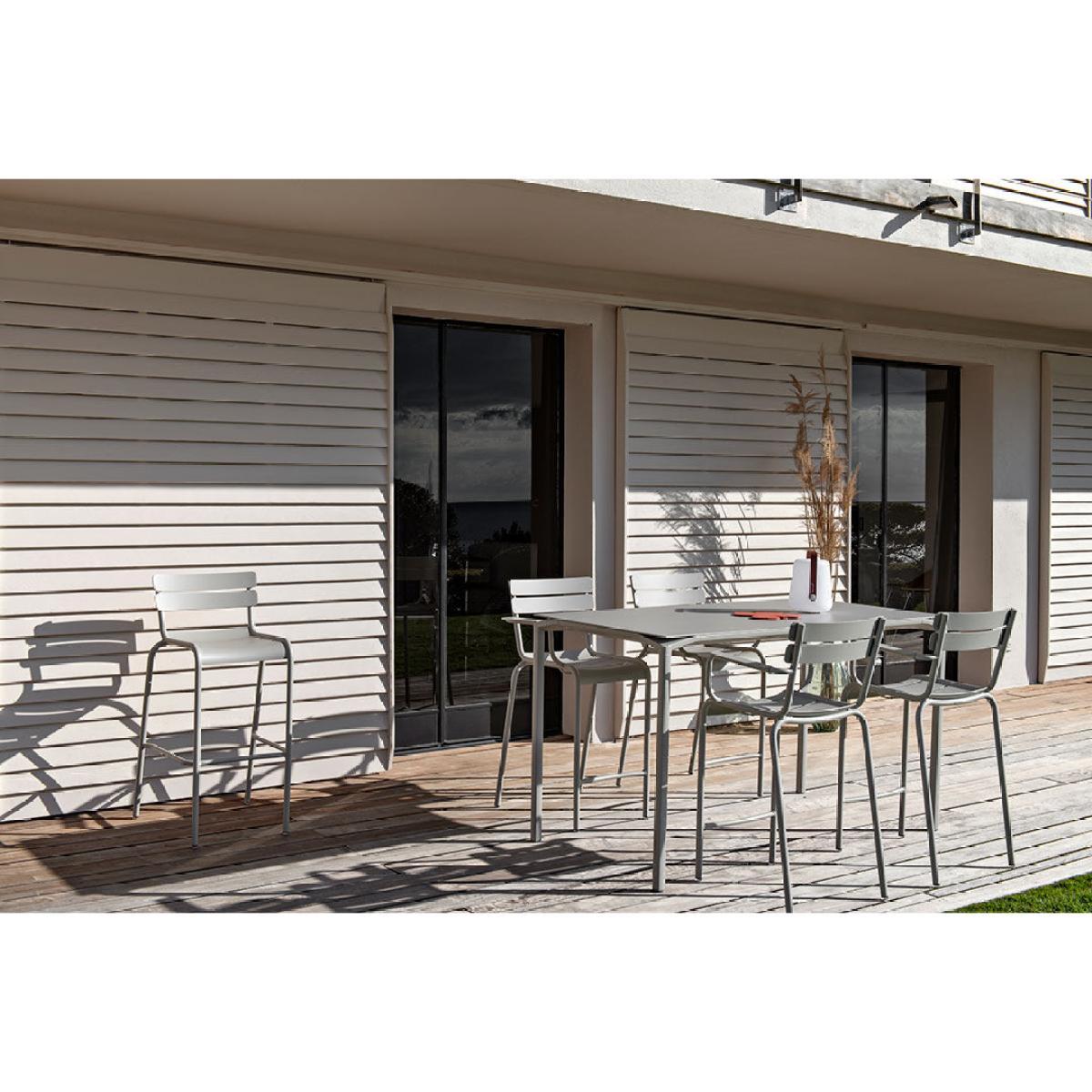 Looking for a garden table that stands out from the rest? A fan of originality and surprising your guests? The Calvi tall table is a sure winner, halfway between a bar table and a traditional table, allowing you to host your friends and family, sitting comfortably on the matching Cadiz bar stools. Once settled in, your guests are all set to enjoy a wonderful evening on the poolside. The lightweight design of this tasteful high table, created by Antoine Lesur, is focused around the fact that its tabletop appears to float weightlessly over its legs: the aluminium injection in the corners, a truly impressive technique, combined with the finesse of the tabletop, is the collection's signature touch, creating this astonishing effect! Another feather in your outdoor living space's cap, as it's made from aluminium, the Calvi high table can withstand even the most extreme weather conditions and the most demanding uses. Faring just as well outdoors as it does indoors, it's always a sure hit.