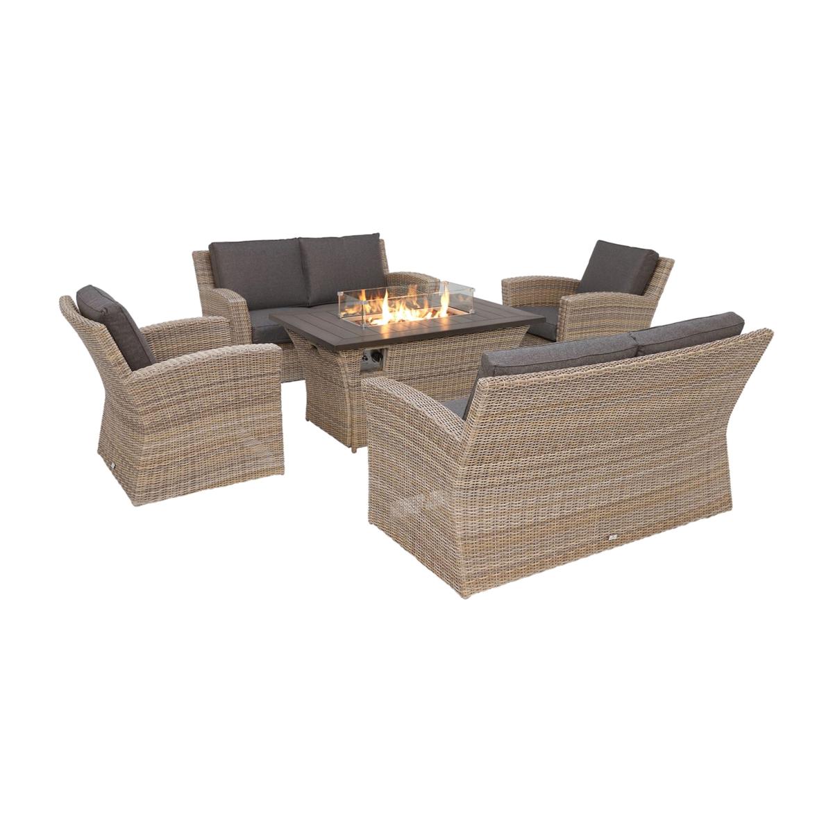 Calvia Garden 6 Seater Sofa Set with Fire Pit, Neutral | Barker & Stonehouse