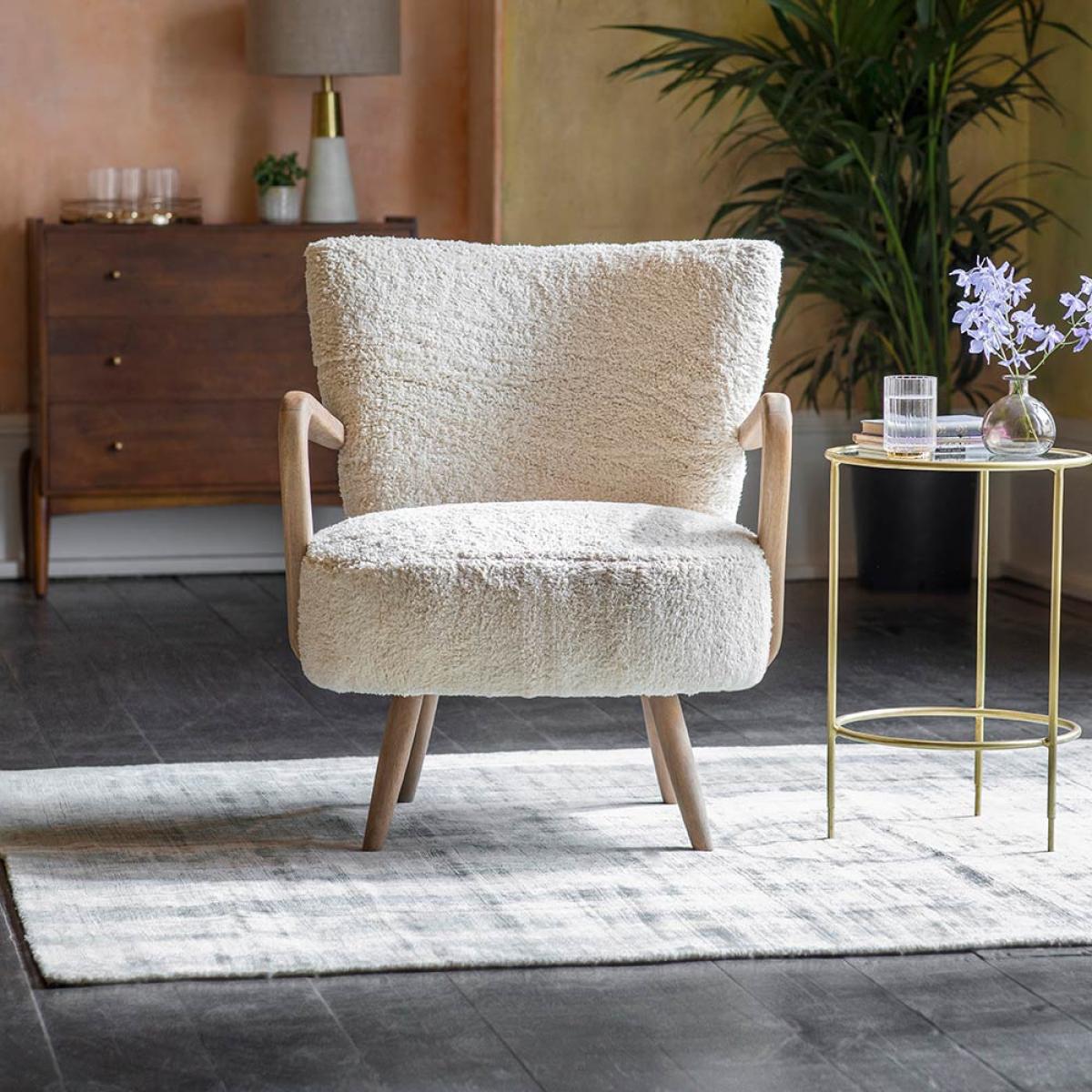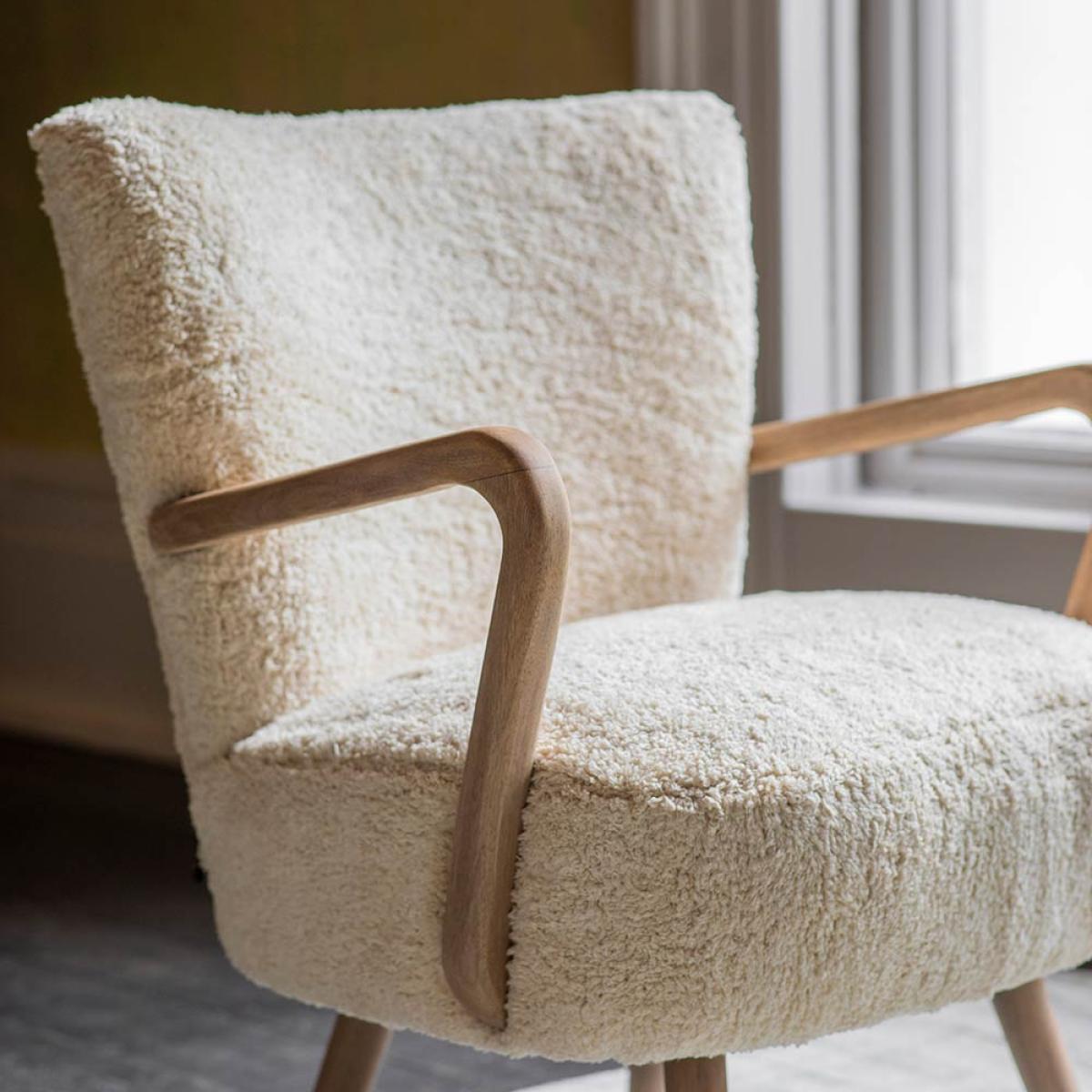 I’m a fan of the Calvin armchair for its soft boucle upholstery and sculptural wooden arms - it adds texture without overpowering a room. It works particularly well in Scandinavian-inspired spaces, modern minimal schemes or even a cosy reading corner in a traditional interior. For styling, tuck it beside a black-metal side table and a tall plant to balance the pale tones, then layer with a slim lumbar cushion or fine-knit throw in a contrasting hue. It’s equally happy facing your sofa or positioned solo by a window to create a relaxed, inviting spot.