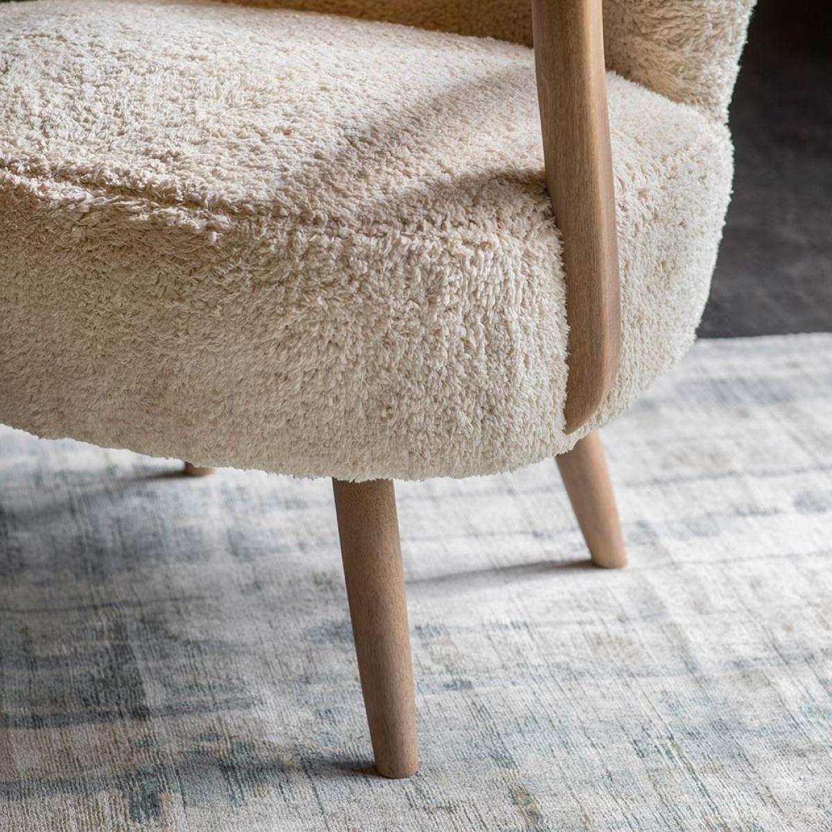 Offering instant feel appeal, our new Calvin Armchair is an ultra-tactile design with a plain cream rug fabric design complemented by wooden arms and legs and brass stud detailing. A great occasional chair or a relaxing spot for reading or watching TV, it looks stunning in the living room or bedroom as well as in a guest room, on the landing or in the hallway. We also think it works well in a nursery or children’s room.