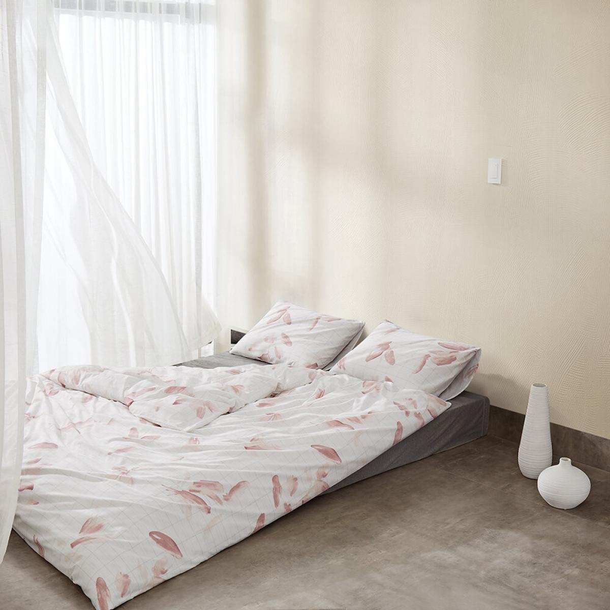 I love this duvet cover for its classic yet contemporary look - the blush hue adds a soft, calming touch to a bedroom. It's versatile and works well in both minimalist interiors and more eclectic spaces, especially those with neutral tones or subtle accents. For styling, consider pairing it with crisp white or light grey bedding for a fresh look, then add textured cushions or throws in complementary colours like soft pinks or warm beige to enrich the space. It also looks great in bedrooms with natural light, enhancing its gentle floral pattern without overpowering the room. Practical tip: its subdued colour tone makes it easy to switch up your decor seasonally, simply by adding different accessories.