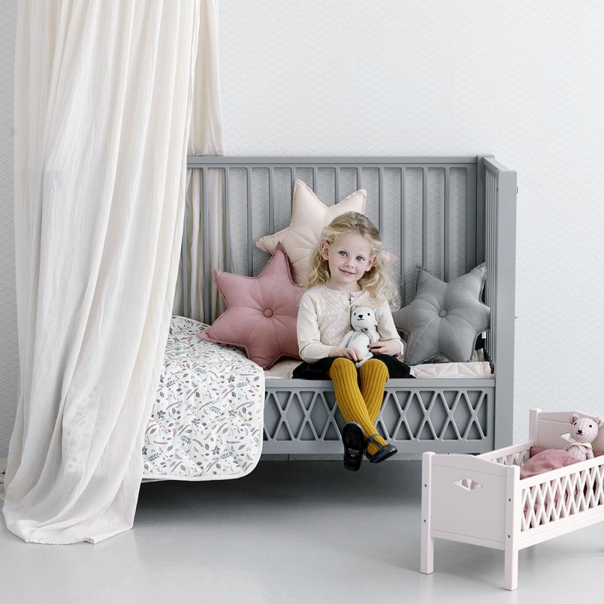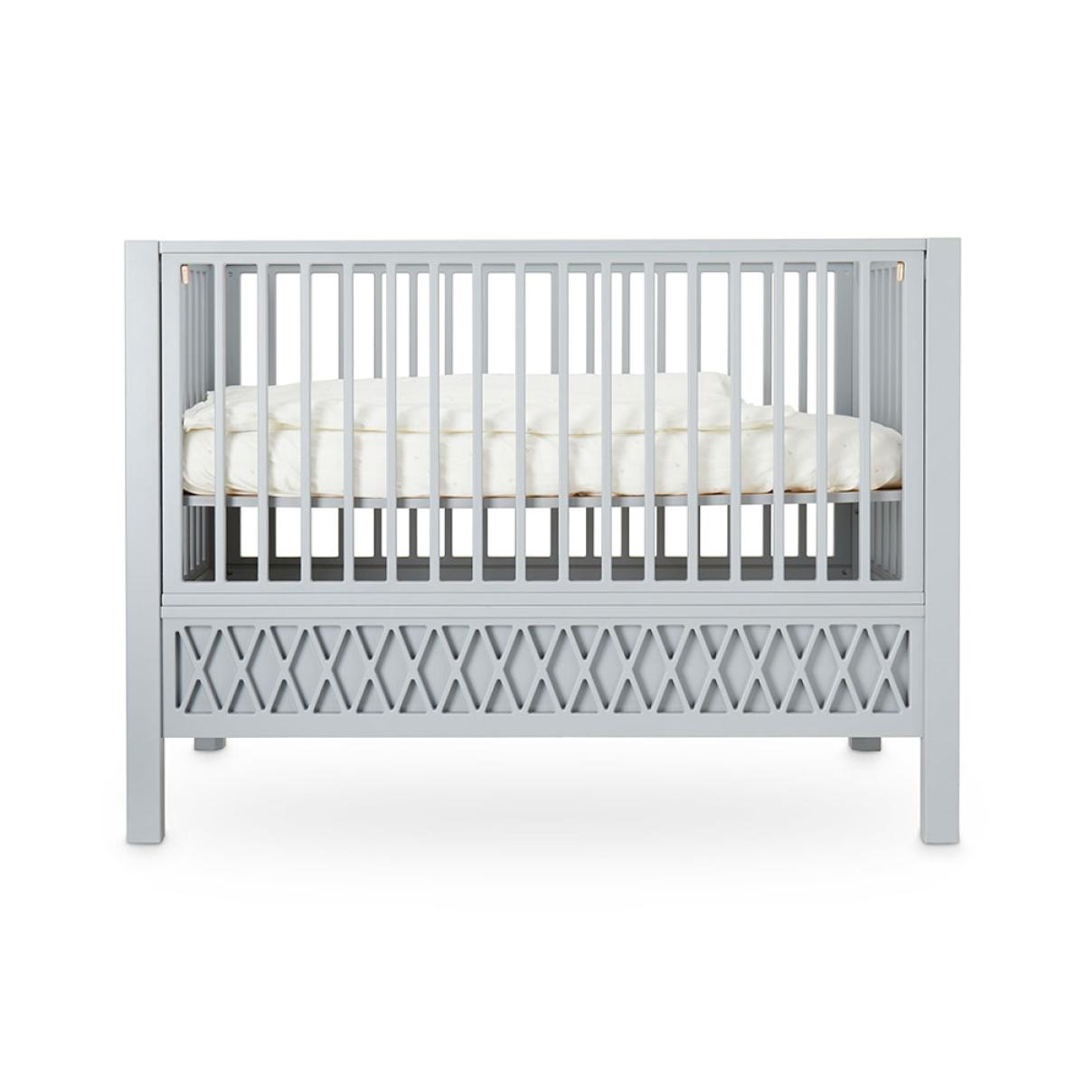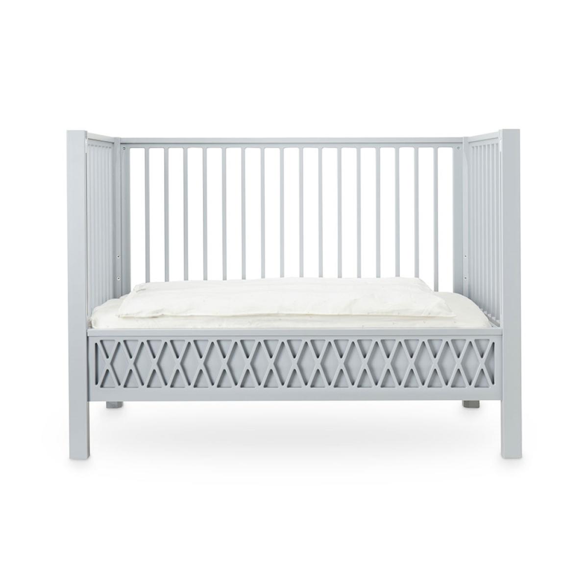 Pairing traditional details with contemporary Scandinavian styles, the Cam Cam Copenhagen Harlequin Cot Bed will look oh-so precious in the nursery. Featuring an adjustable wooden frame, raise and lower the bed base to suit your little one's needs. With 3 height settings, tend to your newborn without hurting your back and once they've started to find their feet, lower the mattress and stop quick escapes! Including childproof push-button locks; quickly and easily remove the side when changing bedding and later transform the gorgeous frame from a cot into a toddler or day bed. Finished in a choice of colours with a matching wardrobe and changing table available, all featuring the Harlequin diamond pattern, style this gorgeous collection with coordinating accessories and toys to create a cosy retreat for counting sheep!.