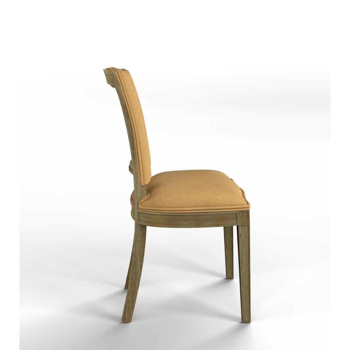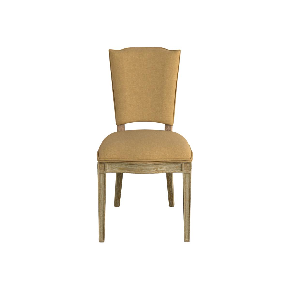 Modelled on antique French furniture, this dining chair features a high, gently curved back and lightly textured solid-oak legs. Hand upholstered in a timeless Dijon yellow linen, the padded seat and narrow silhouette of the Camaret combine to make an elegant and comfortable chair that's well-suited to sociable, relaxed dining.