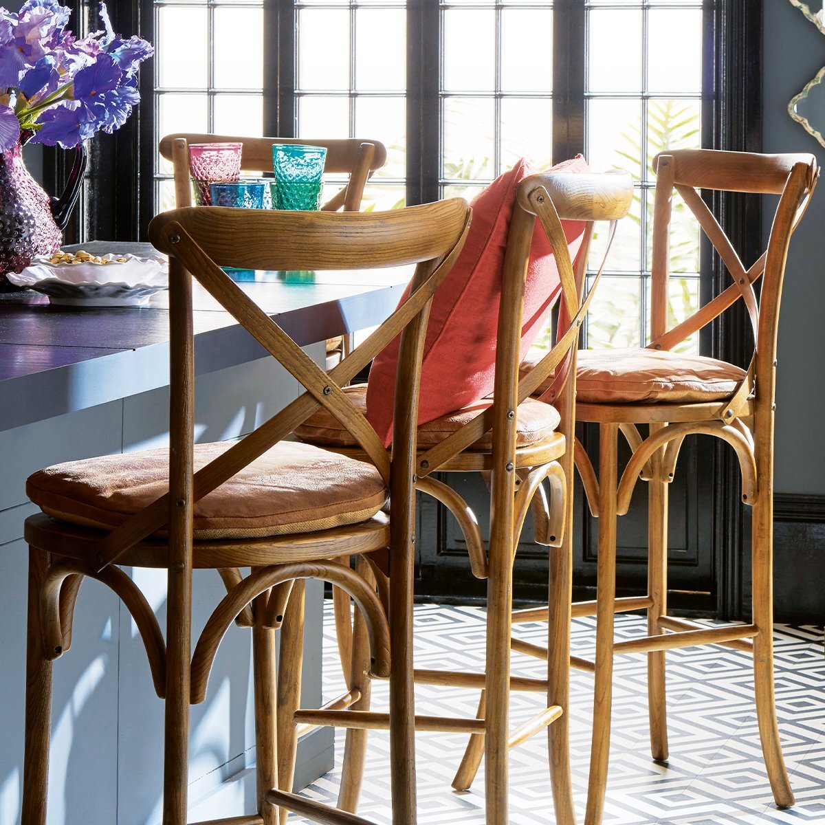 I love this chair for its timeless, slightly rustic appeal and the rich aged tobacco leather seat pad that adds warmth and character. It works beautifully in both traditional and industrial-inspired interiors, especially where a mix of materials and textures is key. For practical styling, pair it with a neutral or slightly textured table surface to highlight the leather detail, and consider a matching set for symmetry or deploy as accent chairs around a larger dining table. Adding simple linen or cotton seat cushions can enhance comfort and introduce subtle colour variation, while keeping the overall look casual yet sophisticated.