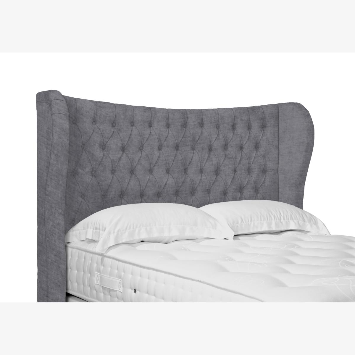 Discover The Artisan Collection, designed to bring handcrafted luxury and style to your bedroom. This premium range includes a selection of divan bases – from traditional platform tops offering a firmer feel to sumptuous pocket sprung options for enhanced mattress comfort. Many divan bases are available with storage drawers, in both standard and on-trend shallow designs. Complement your divan with one of the collection’s striking floor-standing headboards, including standout winged designs. Each piece in The Artisan Collection is beautifully upholstered in a wide choice of luxury fabrics and handcrafted in the UK, ensuring exceptional quality and elegant style for your sleep sanctuary. This beautiful, extra-height floor standing headboard makes an instant style statement. We love its grand, curved wings and classic buttoning detail. Handcrafted exclusively for Furniture Village. Why you'll love it Classic curves meet modern comfort in this beautiful headboard. Fully upholstered from top to floor for a flawless finish and a luxurious look. Made with sustainable FSC-sourced wood. In a choice of beautiful fabrics. Handcrafted in the UK. Find the Camber high floor standing headboard only at Furniture Village. What you need to know This floor standing headboard is supplied with bolts to attach it to a divan base. Available in single, small double, double, king and super king sizes. 145 cm tall. Clean regularly using a soft brush or vacuum with the curtain attachment. Deal with any spills promptly. Professional cleaning advised for oil- and grease-based stains. Some fabrics can show wear on areas of more use or in direct sunlight. Item code: CAMBH150--003