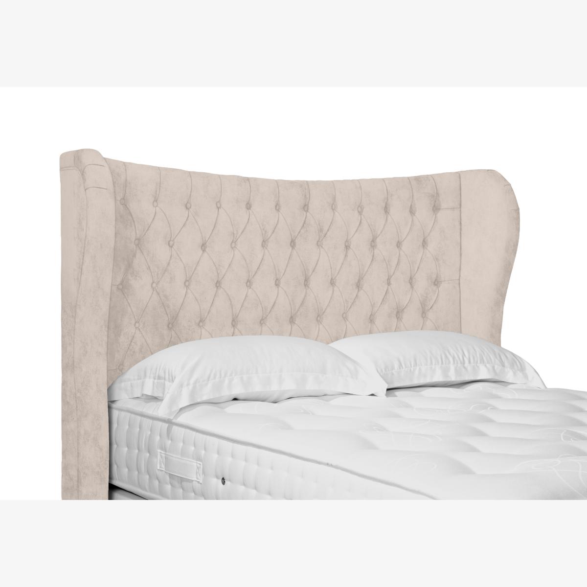 Discover The Artisan Collection, designed to bring handcrafted luxury and style to your bedroom. This premium range includes a selection of divan bases – from traditional platform tops offering a firmer feel to sumptuous pocket sprung options for enhanced mattress comfort. Many divan bases are available with storage drawers, in both standard and on-trend shallow designs. Complement your divan with one of the collection’s striking floor-standing headboards, including standout winged designs. Each piece in The Artisan Collection is beautifully upholstered in a wide choice of luxury fabrics and handcrafted in the UK, ensuring exceptional quality and elegant style for your sleep sanctuary. This beautiful, extra-height floor standing headboard makes an instant style statement. We love its grand, curved wings and classic buttoning detail. Handcrafted exclusively for Furniture Village. Why you'll love it Classic curves meet modern comfort in this beautiful headboard. Fully upholstered from top to floor for a flawless finish and a luxurious look. Made with sustainable FSC-sourced wood. In a choice of beautiful fabrics. Handcrafted in the UK. Find the Camber high floor standing headboard only at Furniture Village. What you need to know This floor standing headboard is supplied with bolts to attach it to a divan base. Available in single, small double, double, king and super king sizes. 145 cm tall. Clean regularly using a soft brush or vacuum with the curtain attachment. Deal with any spills promptly. Professional cleaning advised for oil- and grease-based stains. Some fabrics can show wear on areas of more use or in direct sunlight. Item code: CAMBH150--011