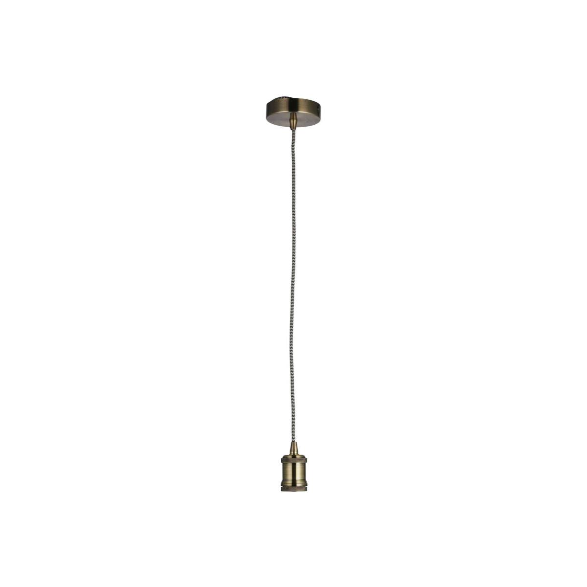 An on-tend vintage style cable set, antique brass finish with authentic industrial knurled details, suspended from height adjustable black and cream fabric flex. The perfect carrier for filament LED lamps to create that 'resto' style exposed lamp look.