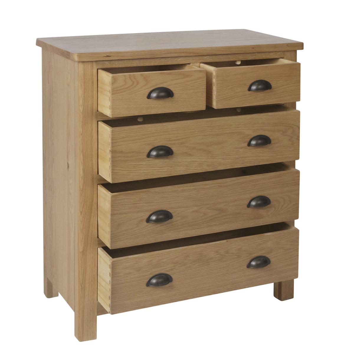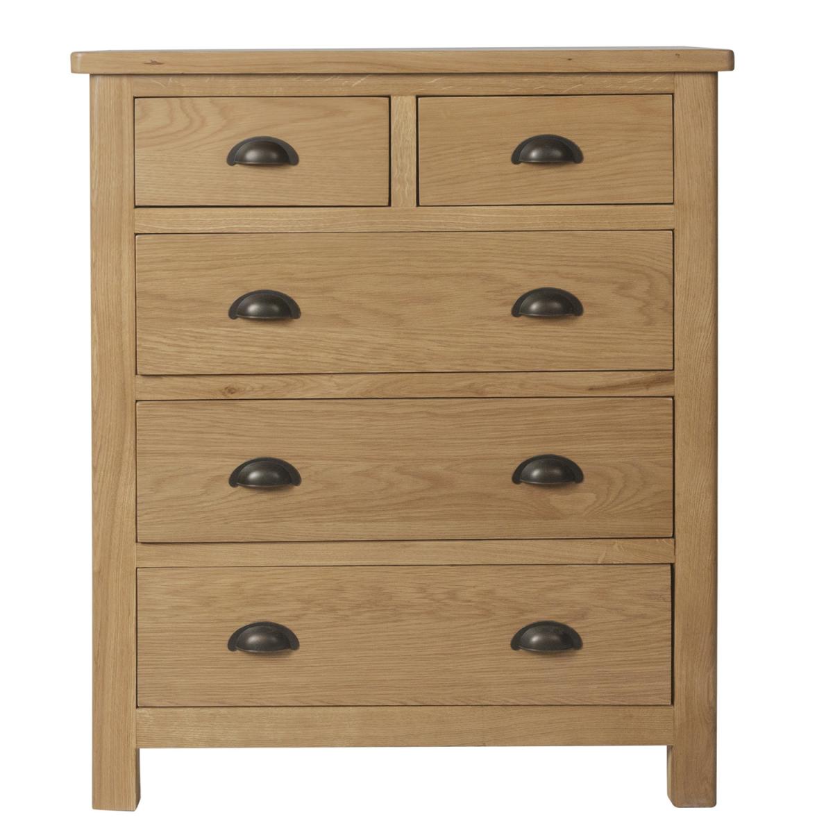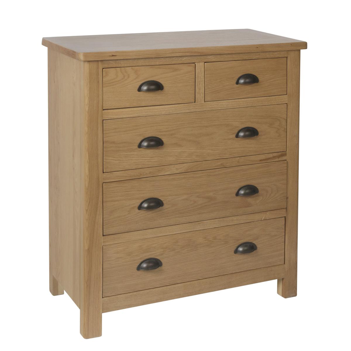 Storage and style combine to create a country-style Chest of Drawers in the shape of our new Cambridge Oak 2 Over 3 Chest. The result is a stylish, contemporary and beautifully crafted piece of furniture that allows you to finally explore your love of all things country. The antique style handles balance the rounded edges and clear finish of the oak to create a piece that offers a whole host of matching options. All you have to do is decide which one you want to explore first.