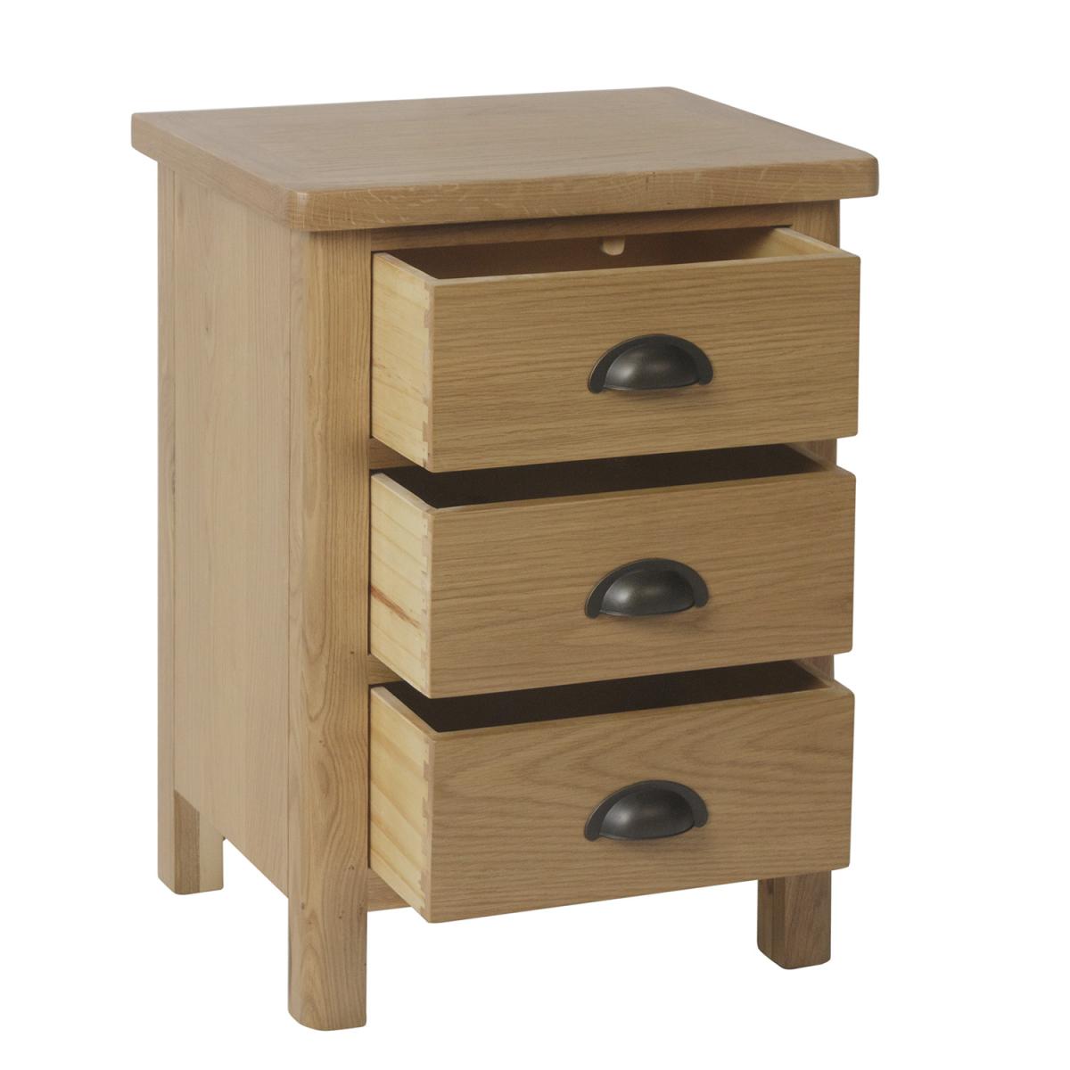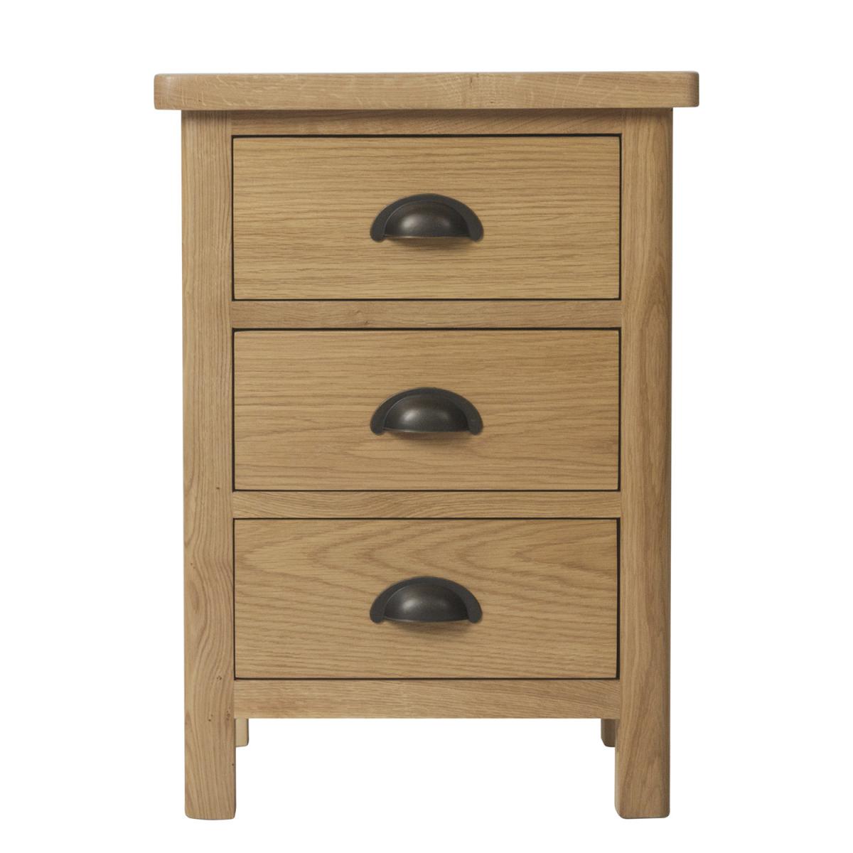 Treating yourself to a true touch of artisan luxury is what the Cambridge Oak 3 Drawer Bedside Cabinet is all about. By taking the time to get every joint and line flawless, our craftsmen have created a Bedside Table that allows you to explore what it really means to add luxury furniture to your home. The handles are finished with a rich antique effect, the corners have been expertly rounded and the vibrant look of the oak catches your eye from across the room. Perfect for creating the relaxing little haven away from it all you’ve always wanted.
