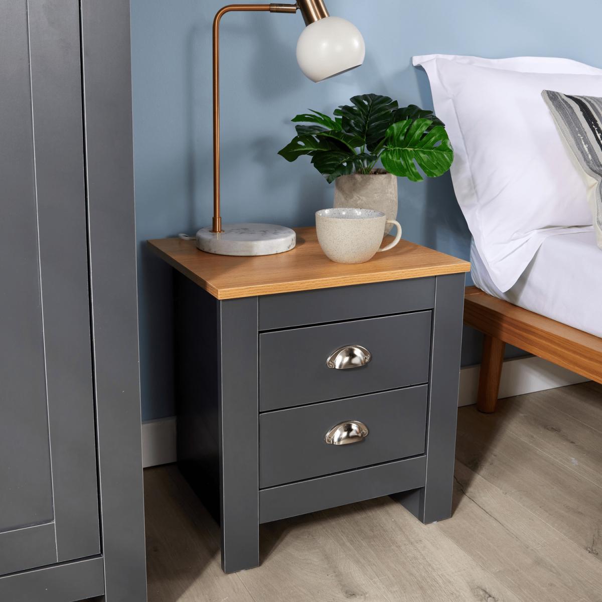Camden 2 Drawer Bedside Table Bedroom Storage Unit - Graphite