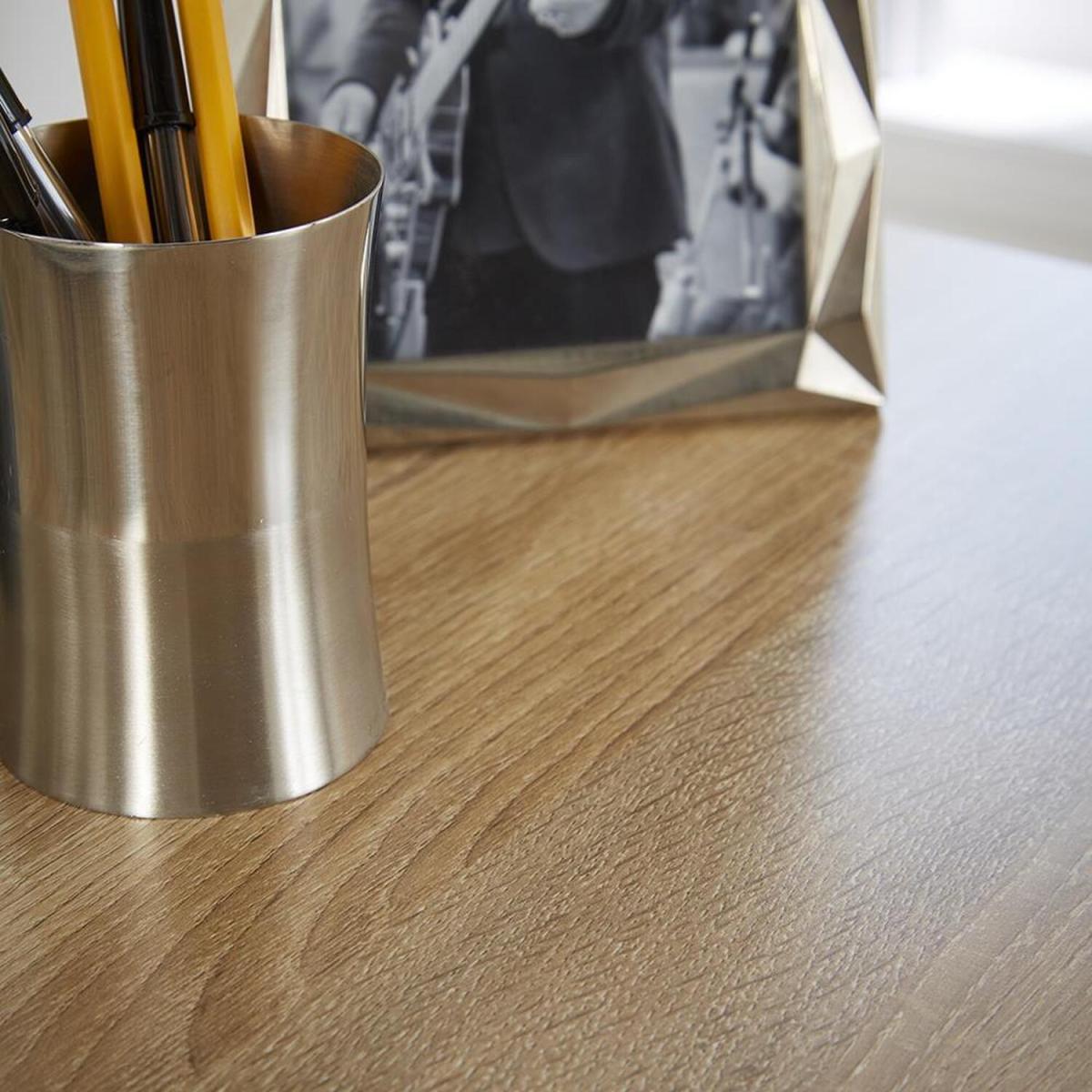 The 3 Drawer Camden Desk is suitable for any home office environment. There are three spacious drawers which are perfect for storing things away, plus three additional shelves for filing documents and other items. The Sonoma Oak top surface is spacious, whilst also being easy to clean. Easily assembled, this item will complete a home working area. Sturdy and robust, the design is sleek.
