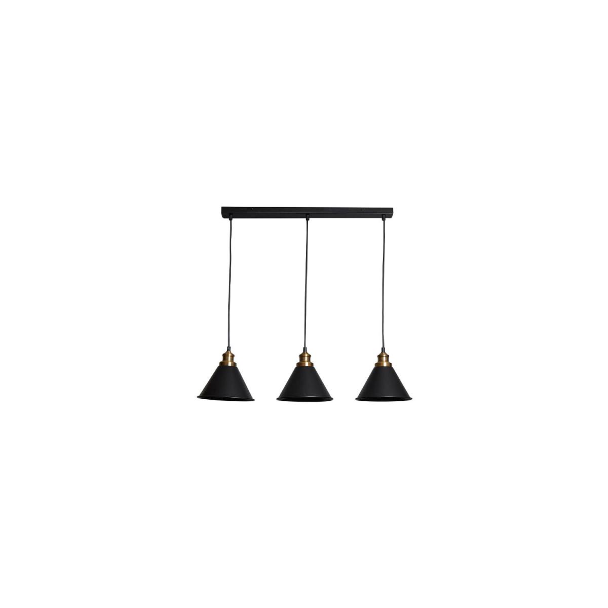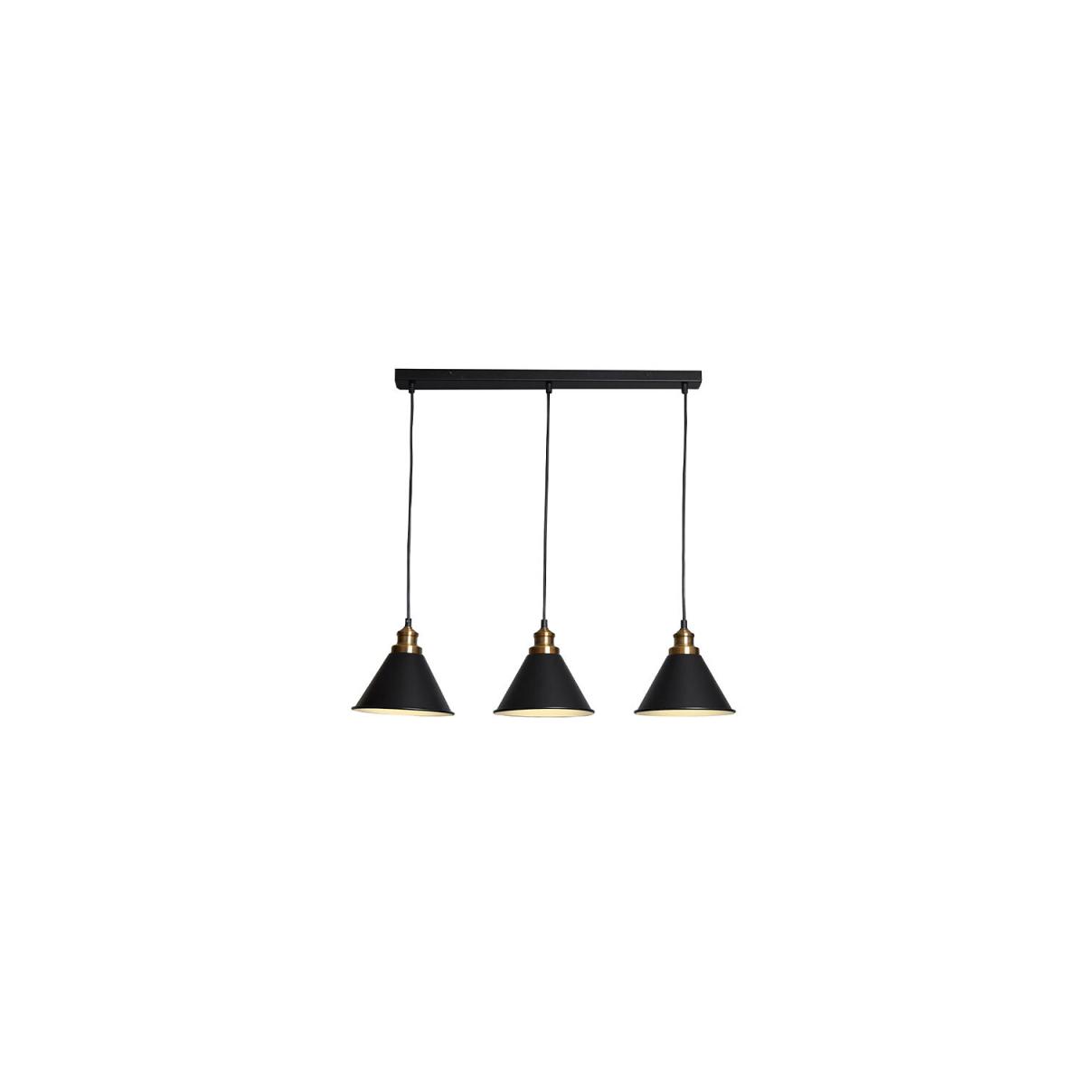Bring a sophisticated, contemporary look to your home decor with the Camden 3 Light Ceiling Fitting. Ideal for above a kitchen island or lining a corridor, this industrial style ceiling light features three bulbs hanging down elegantly from a slim wire. The conical metal shades of the Camden Light is coloured a dramatic matt black and have been accented with antique gold to add an extra luxe touch.