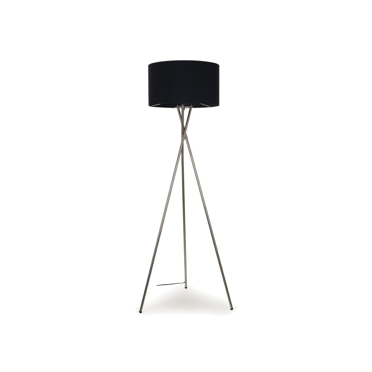 Camden Brushed Chrome Tripod Floor Lamp with Drum Shade - Black