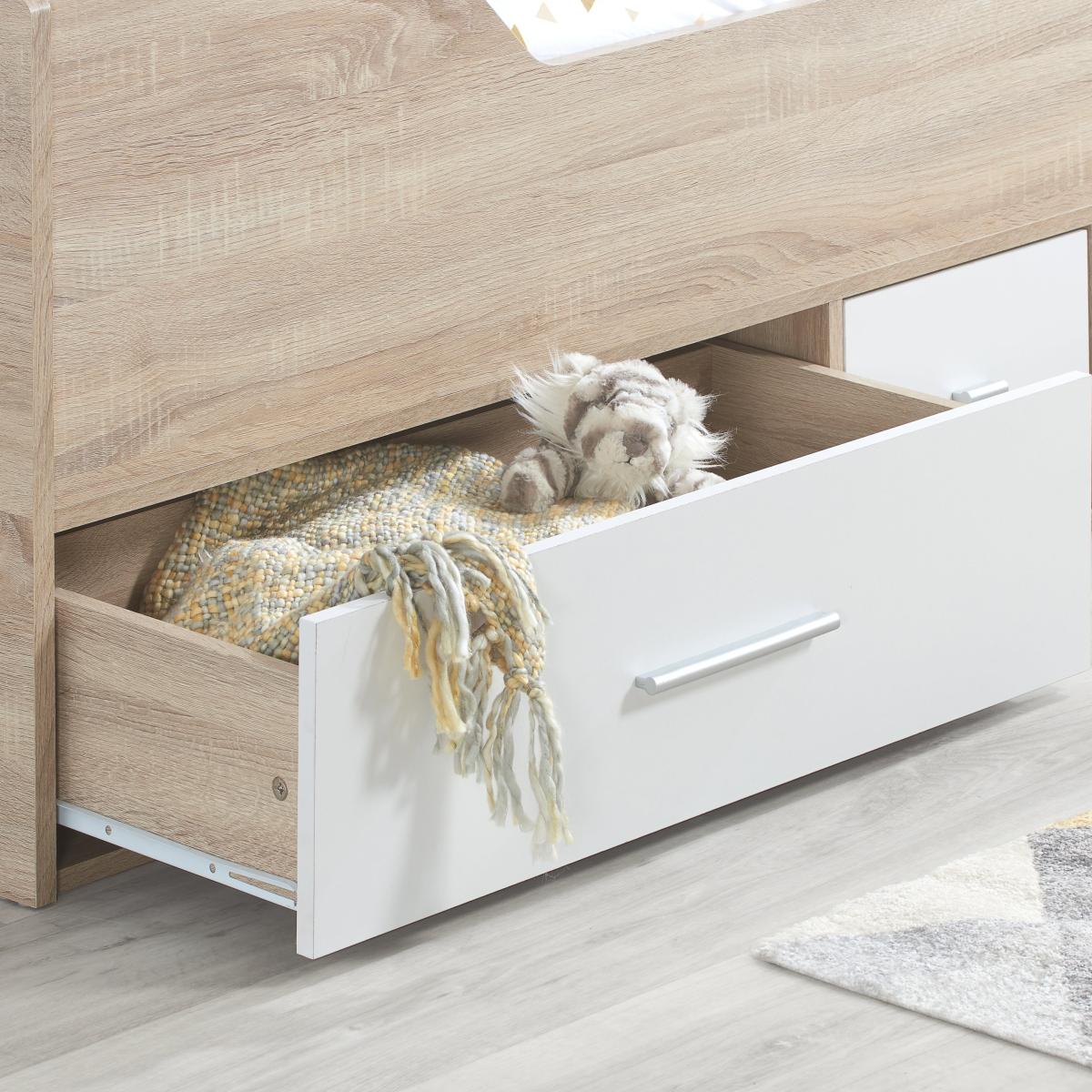 * Cabin bed* 3 internal drawers for plenty of storage space* Solid slat base* Wood effect finish* Great for smaller bedrooms* Make the most of the space you've got When you've got limited space, the best thing you can do is the most obvious: adapt to your surroundings. Which is why this small-scale cabin bed is ideal for smaller bedrooms. It has three internal drawers for plenty of storage space, a solid slat base, and a wood effect finish so it looks great as well as being practical.