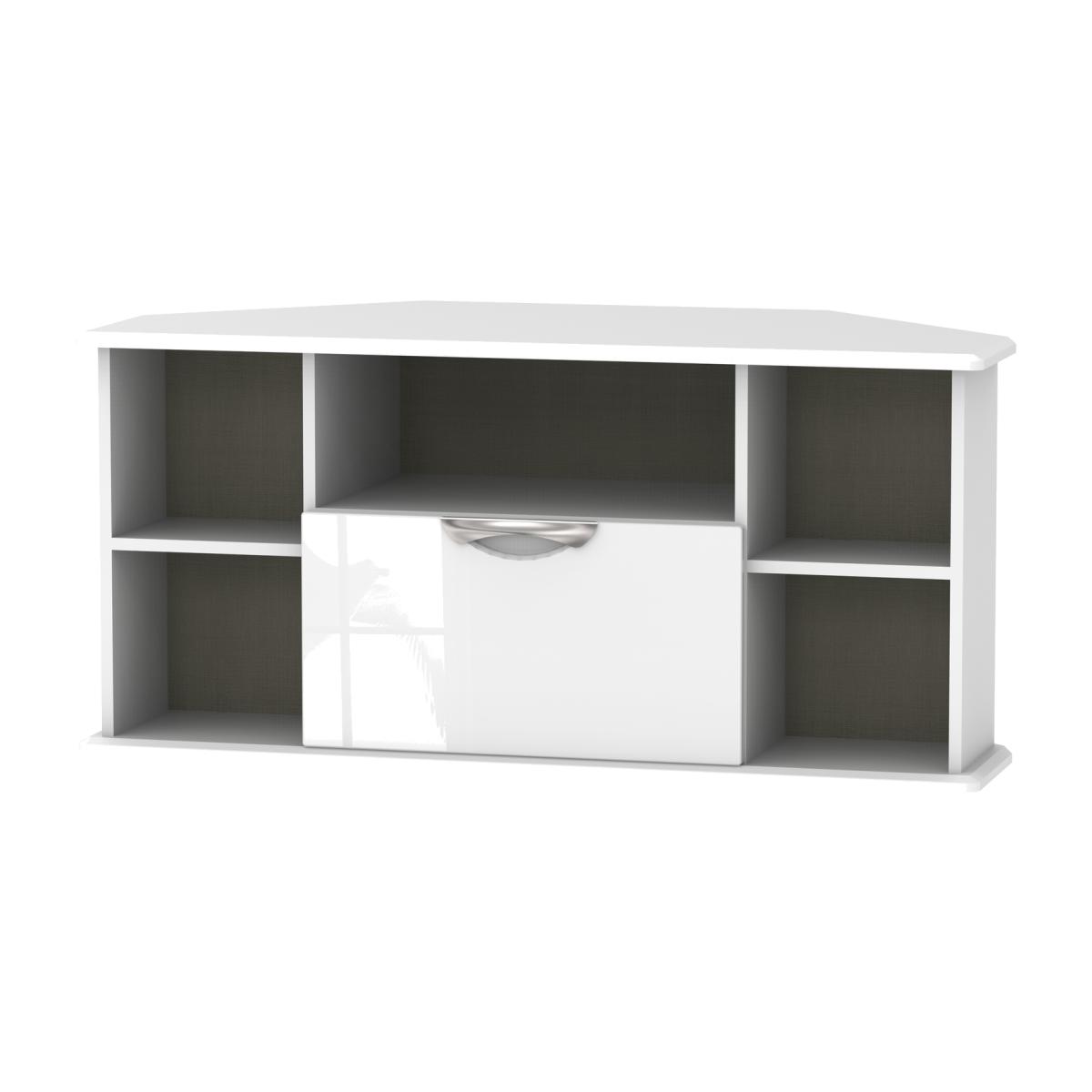 This TV Corner unit features plenty of open shelving and a central storage drawer and will support a flat screen TV of up to 50". Boasting a clean, contemporary look and pleasing practicality, the furniture range makes a seamless addition to any modern looking home. The range offers an array of practical, organised space for items both large and small that will help keep your room neat and tidy. All pieces have a scratch-resistant veneer to help prevent the wear and tear that can come with everyday usage, while the extensive colour options of the drawers and doors is complemented by distinctive cut-out handles and a smooth finish for a great mix of style and functionality. All our furniture is made in the United Kingdom, to the highest quality. It is delivered direct to your location of choice by one of our two man delivery teams, and come full assembled (although legs may be removed to prevent damage in transit).