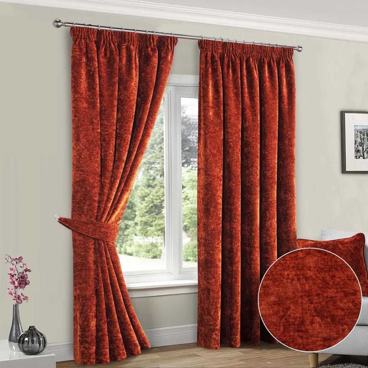 Soft crushed chenille heavyweight curtains, available in terracotta, chocolate or natural. Complete with a thermal full blackout lining that blocks all the light from your window and helps to keep the room warmer in the colder months, and cooler in the summer. These pencil pleat curtains are suitable for a pole or a track, matching tiebacks are available to accessorise your home. The soft handle and texture of this fabric is not to be missed.
