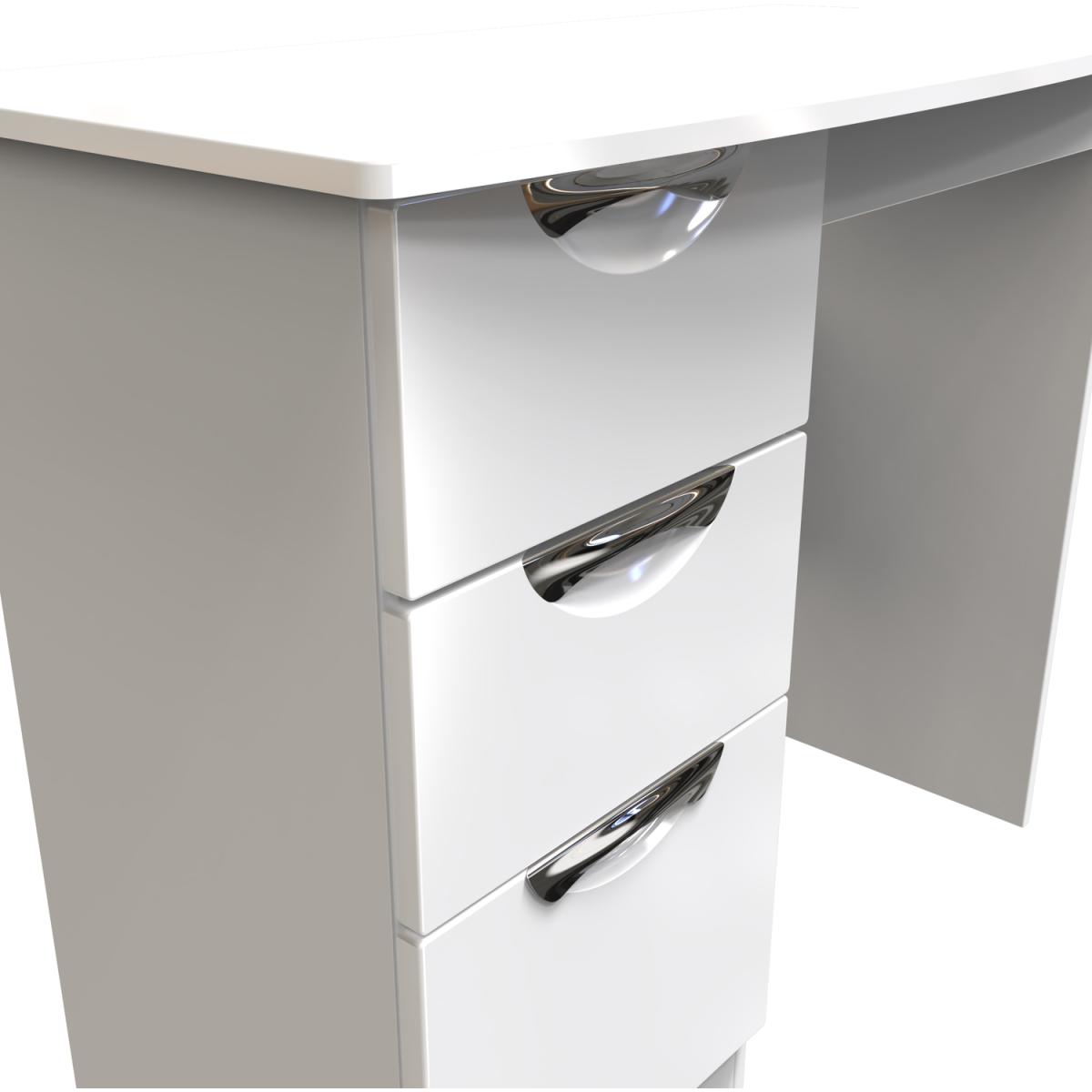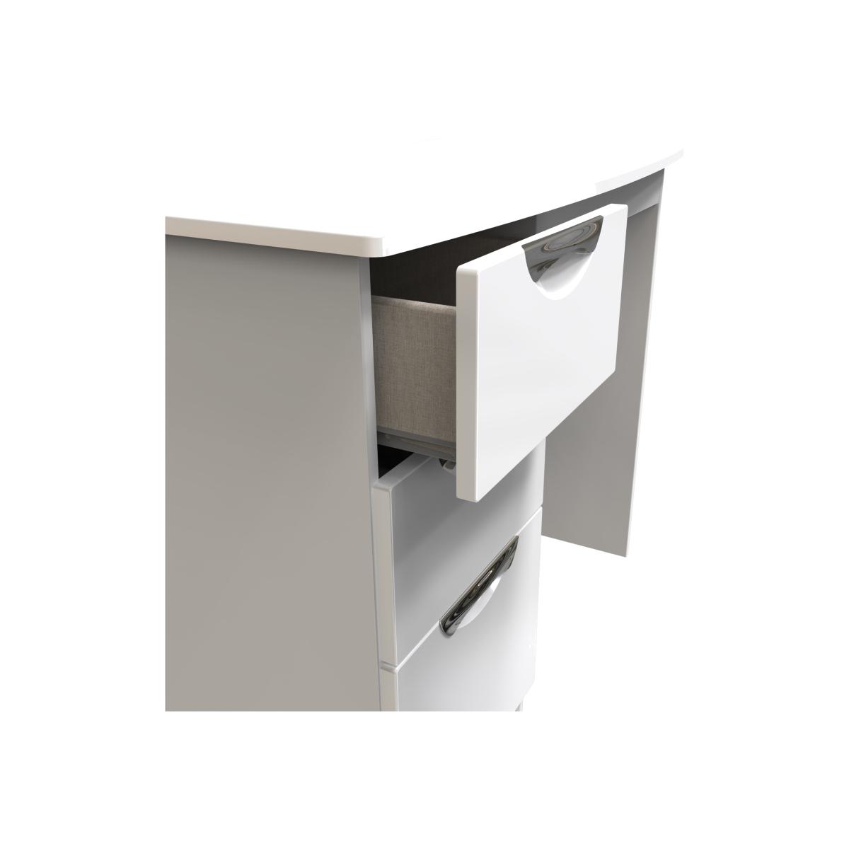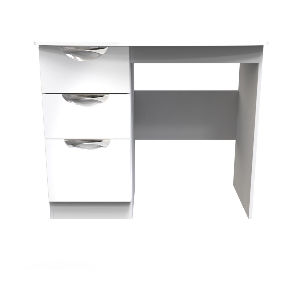 This practical 3 drawer narrow deskvanity is perfect for any bedroom or office. A matching stool and mirror (in 2 sizes) are also available. Boasting a clean, contemporary look and pleasing practicality, the furniture range makes a seamless addition to any modern looking home. The range offers an array of practical, organised space for items both large and small that will help keep your room neat and tidy. All pieces have a scratch-resistant veneer to help prevent the wear and tear that can come with everyday usage, while the extensive colour options of the drawers and doors is complemented by distinctive cut-out handles and a smooth finish for a great mix of style and functionality. All our furniture is made in the United Kingdom, to the highest quality. It is delivered direct to your location of choice by one of our two man delivery teams, and come full assembled (although legs may be removed to prevent damage in transit).