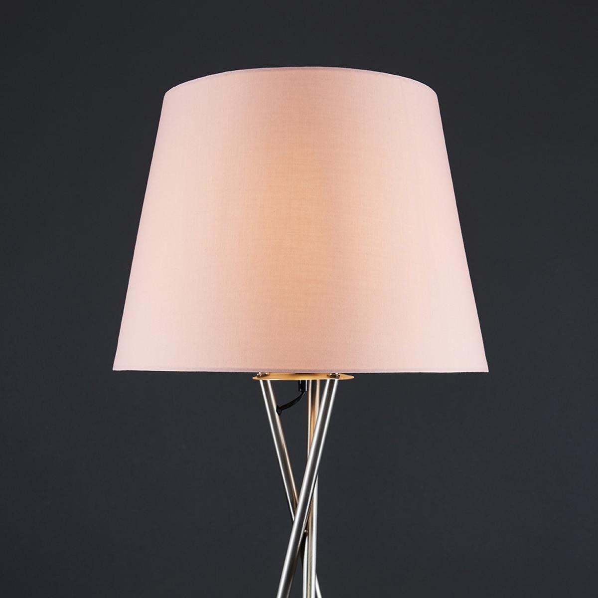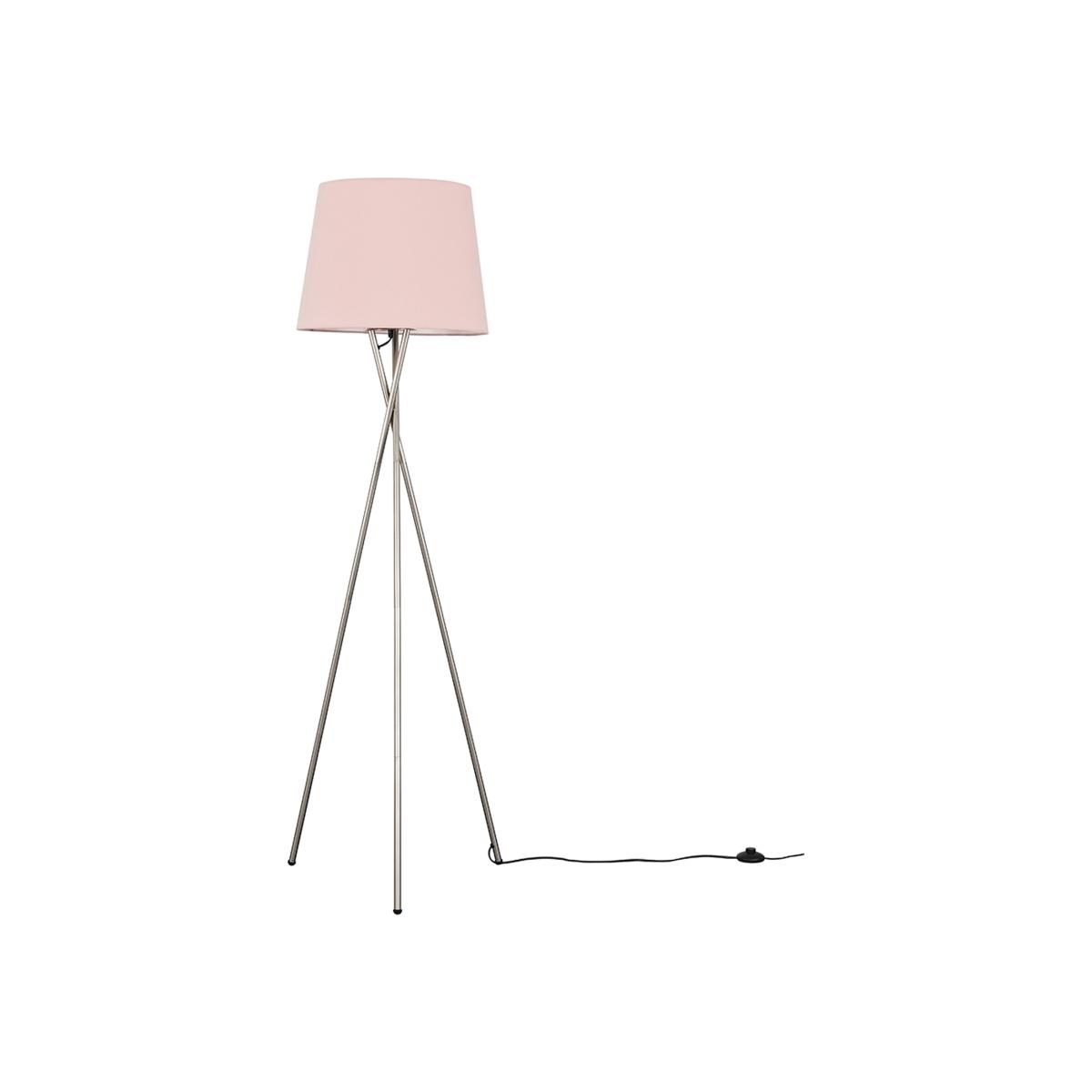 Tripod floor lamp in a brushed chrome metal finish. Comes complete with an extra large pink fabric tapered lamp shade, and features an in-line onoff foot switch for easy use. Floor lamps are a great way to bring additional lighting to a room. Ideal for lounges, hallways, bedrooms and other areas around the home.