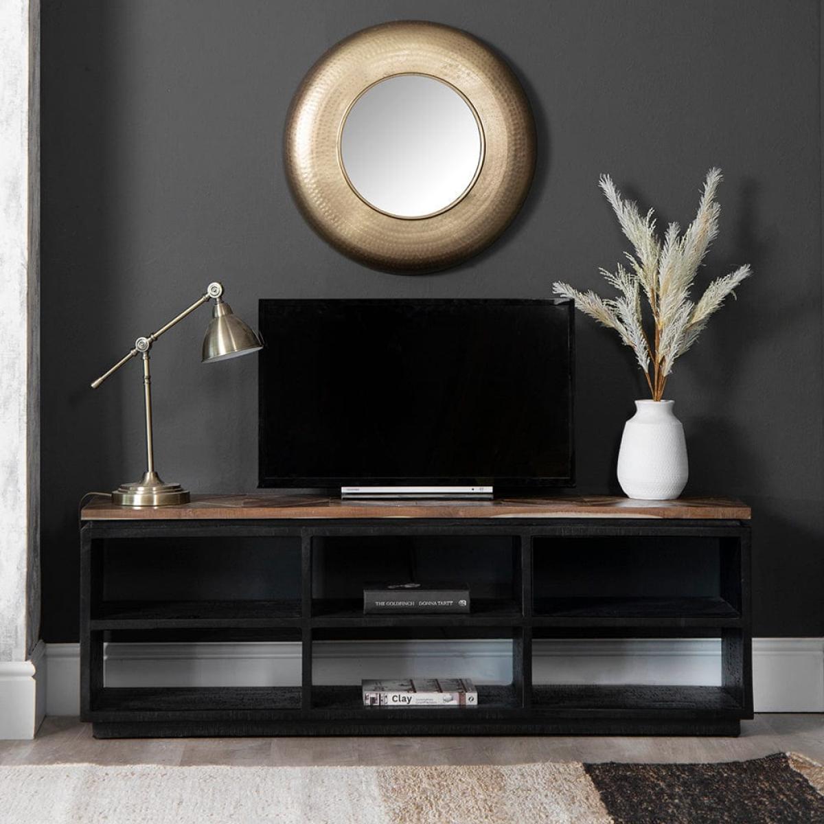 The Camden Teak Large TV Unit is a versatile piece that works well in both contemporary and rustic interiors thanks to its natural wood tones and sturdy design. I love how its generous open shelves provide ample storage and display options, making it easy to keep media essentials organised while also showcasing decorative accessories. For styling, consider layering with a mix of books, ceramics, and greenery to add personality. It works particularly well in open-plan living spaces or homes with a mix of industrial and natural elements, and pairing it with other dark wood or metal finishes can really enhance its character. Practical tip: keep the top surface clear to avoid clutter, and use matching baskets or boxes within the shelving to tidy away smaller items seamlessly.