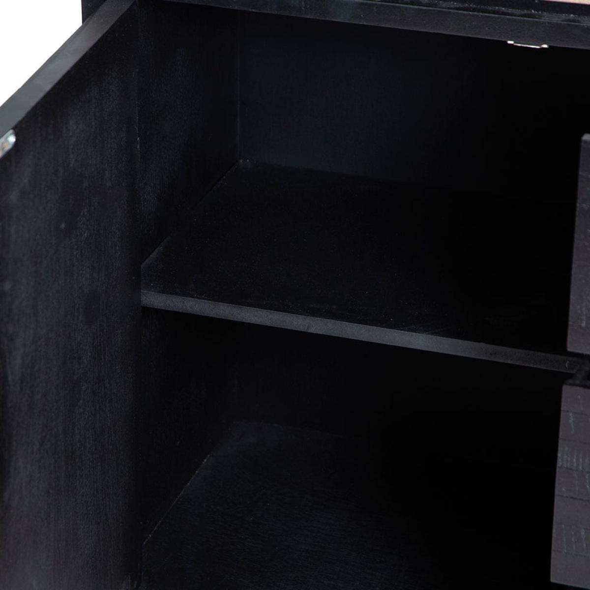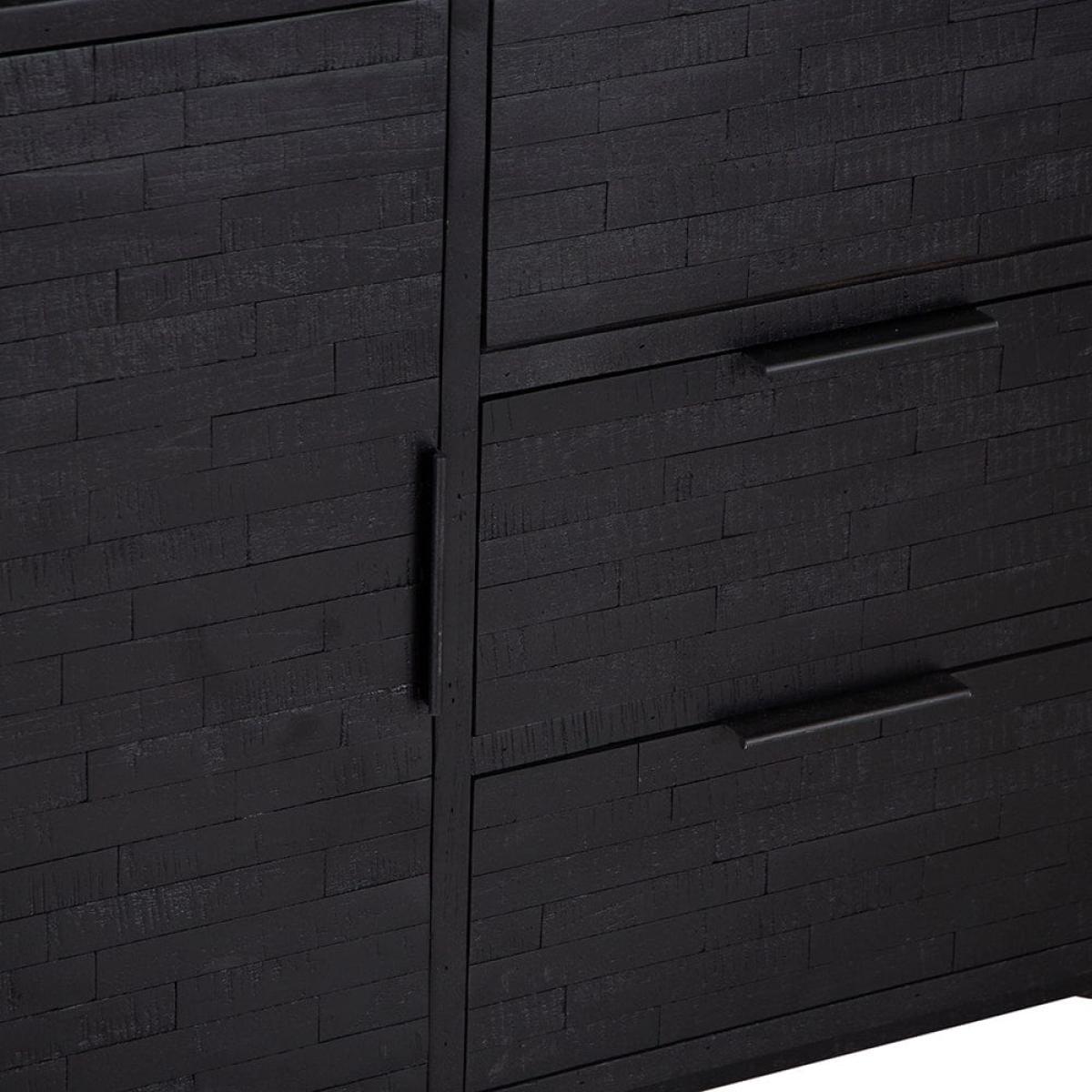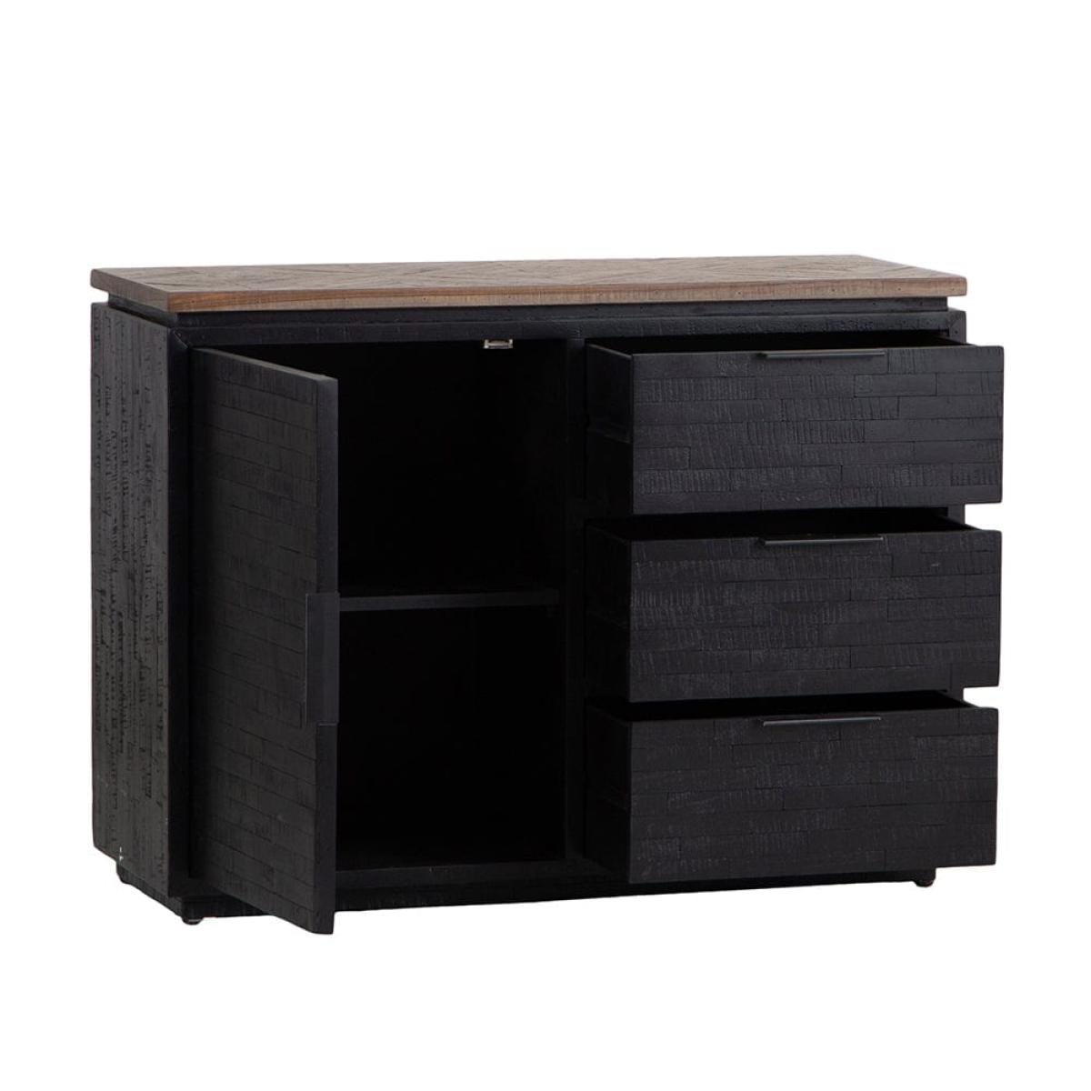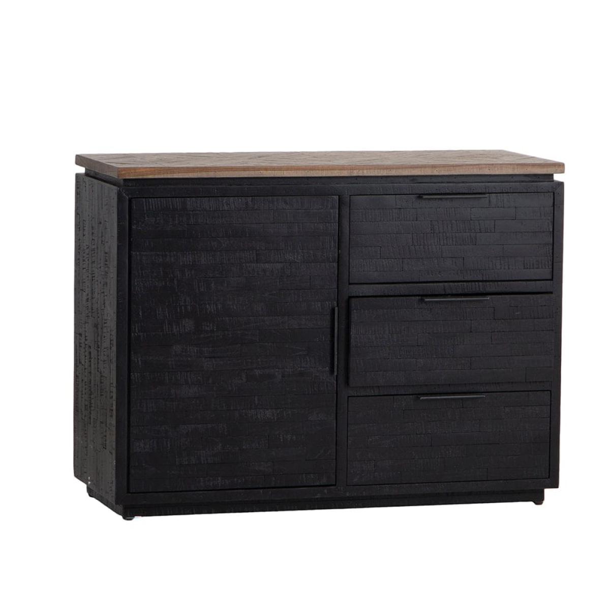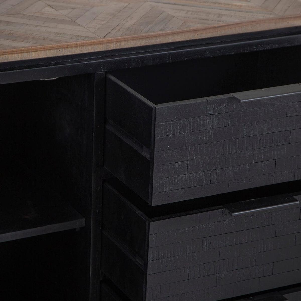 Introducing the bold and striking Camden Teak Collection from Chiltern Oak. A unique collection in every sense, this stunning teak Living and Dining furniture Collection provides an unusual fusion between minimalist and complex that just works. With its matt black finish, clean lines and almost invisible black metal handles, you’d be forgiven for thinking that this range isn’t out to make an impression. However, you’ll be blown away by the top surfaces. Rich in colour with a gorgeous parquet design that varies slightly across all items, the top surface sits proudly atop the body of each item, providing an incredible contrast of colours and styles. Look closely and you’ll notice the indentation below each top surface that gives the impression that it’s floating above the matt black frame.