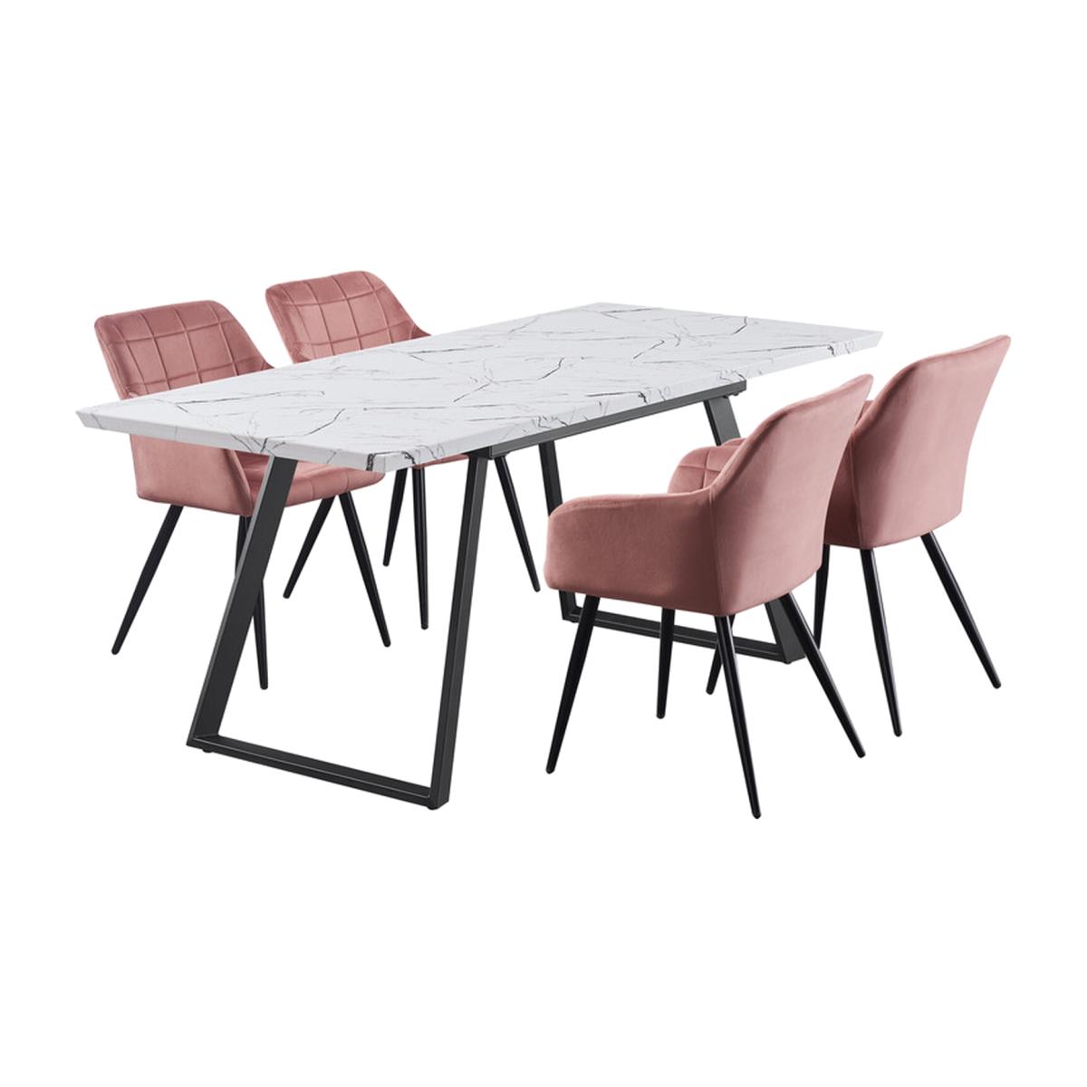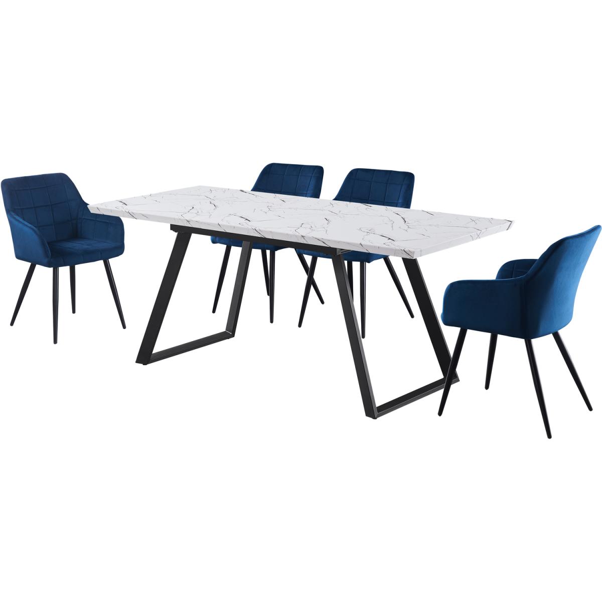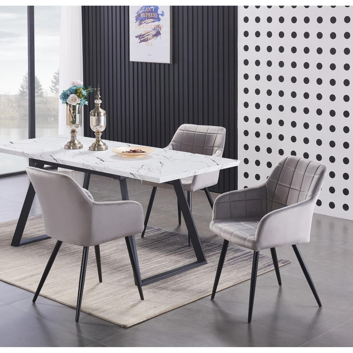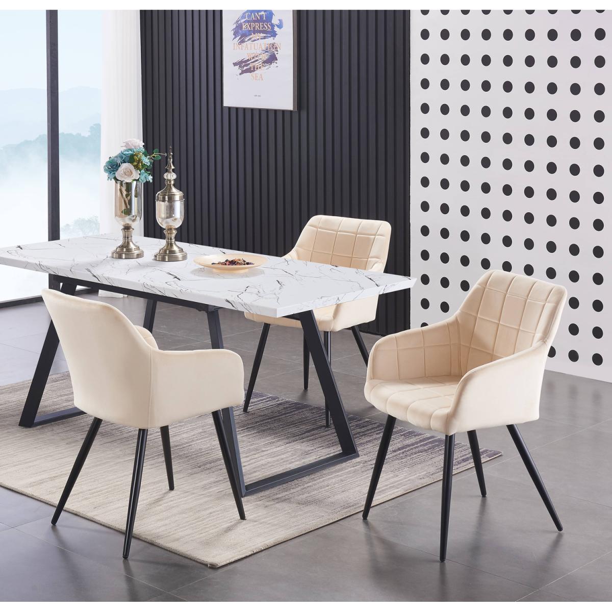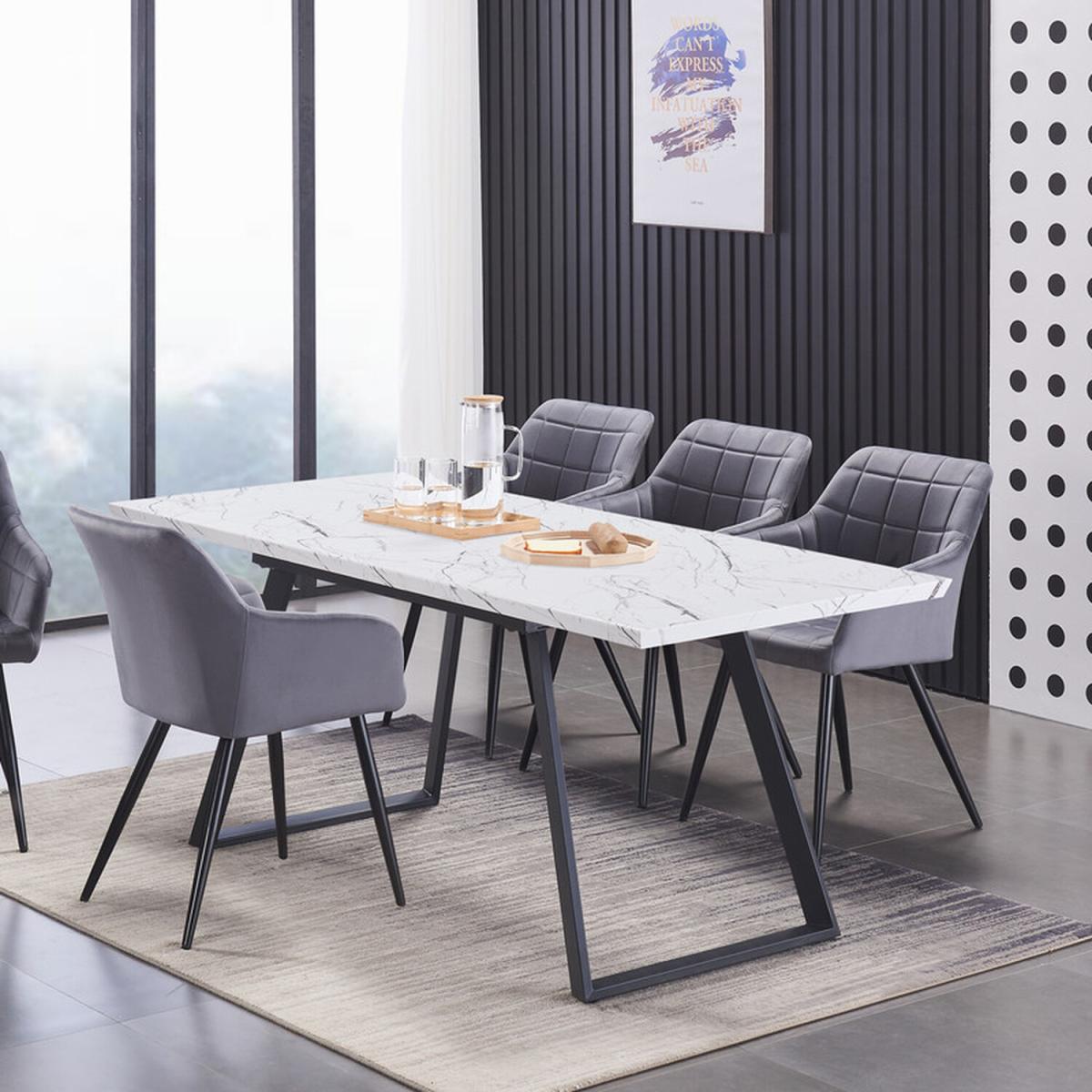 We are offering the dining set of 4 that includes the Toga Table which is extendable from 140cm long to 180cm long, giving you extra space when you need it. Featuring a chic glossy finish, it works great in plenty of home dcor styles, from minimalist and Scandinavian to modern and contemporary. Crafted from durable MDF, known for its durability and easy maintenance, it is set to last for long years to come. It comes with the Camden velvet Dining Chairs that have been created with precision and fine attention to detail which makes this chair a perfect addition to your home. With its simple and streamlined yet high-end look will add a hint of luxury to any space in your home. The beautifully stitched square pattern combined with its velvet material and cushion padding give the camaden a fashionable and comfortable feel while its metal legs and frame add stability and durability to its beautiful design.