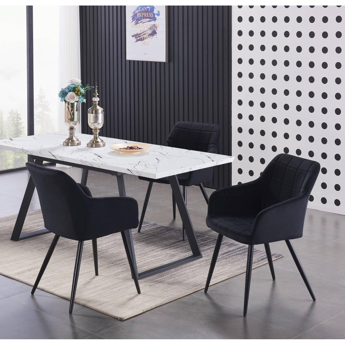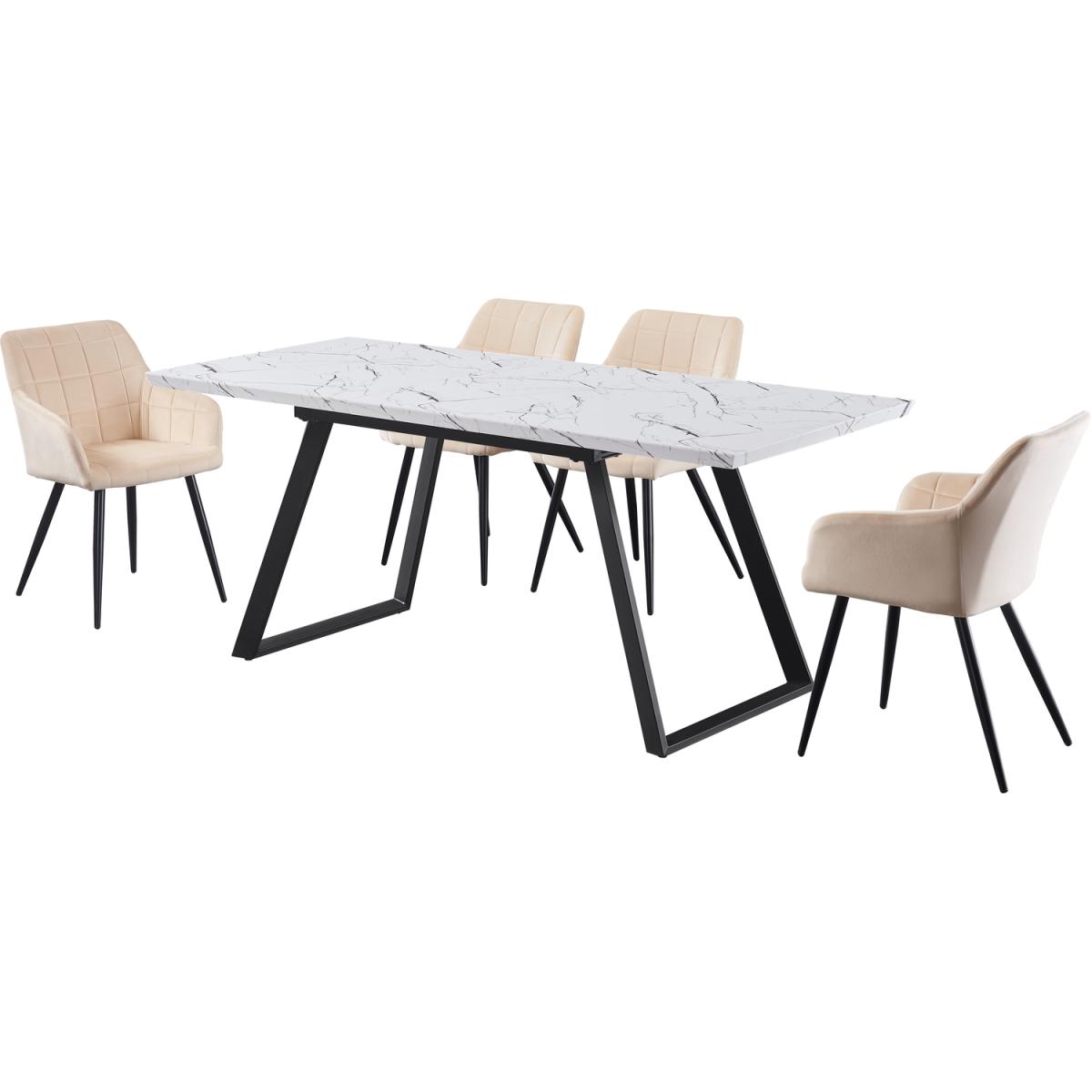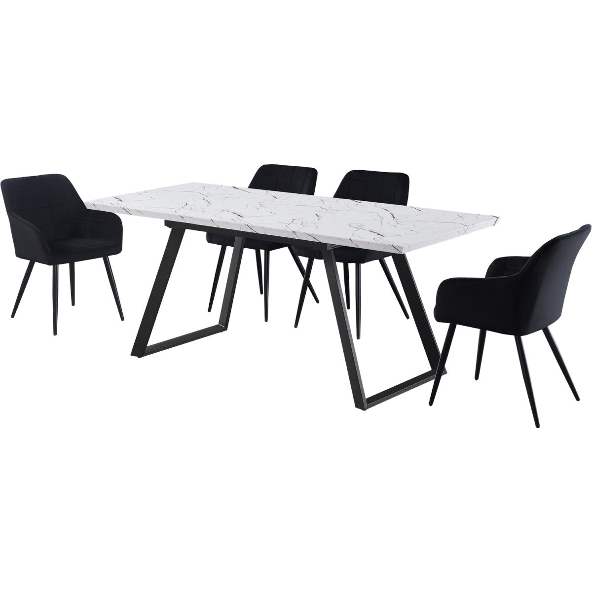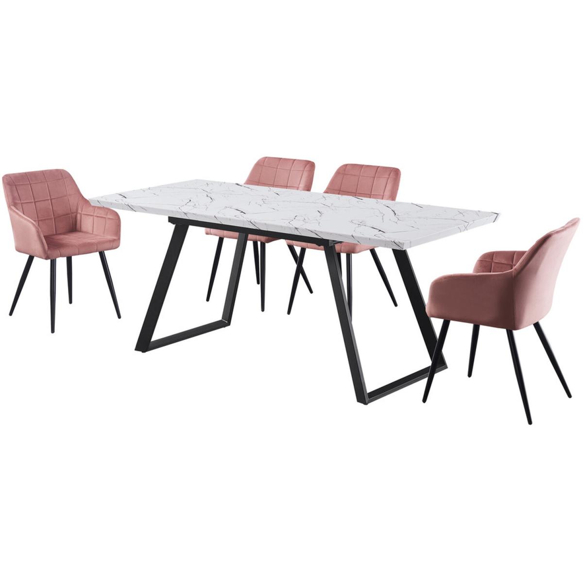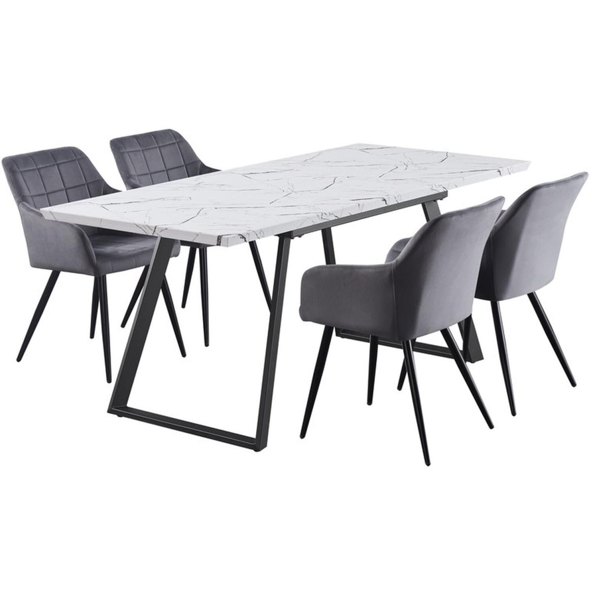 We are offering the dining set of 4 that includes the Toga Table which is extendable from 140cm long to 180cm long, giving you extra space when you need it. Featuring a chic glossy finish, it works great in plenty of home dcor styles, from minimalist and Scandinavian to modern and contemporary. Crafted from durable MDF, known for its durability and easy maintenance, it is set to last for long years to come. It comes with the Camden velvet Dining Chairs that have been created with precision and fine attention to detail which makes this chair a perfect addition to your home. With its simple and streamlined yet high-end look will add a hint of luxury to any space in your home. The beautifully stitched square pattern combined with its velvet material and cushion padding give the camaden a fashionable and comfortable feel while its metal legs and frame add stability and durability to its beautiful design.