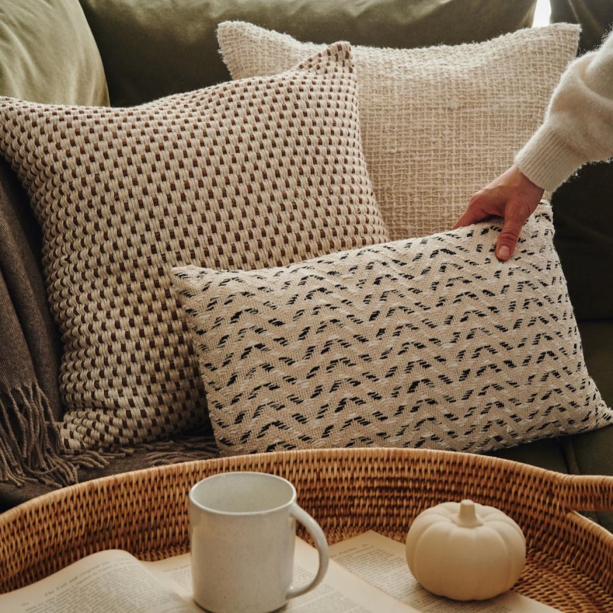 I love the neutral tones and textured weave of this cushion-it adds a subtle sophistication that works beautifully in both contemporary and classic interiors. The camel and cream palette makes it versatile, pairing well with earthy tones, soft linens, or even incorporating it into a more layered, bohemian look. Practical styling tips include mixing it with other cushions of different textures or shapes on sofas or armchairs to create a cosy, inviting feel. It’s ideal for adding visual interest without overwhelming the space, making it a go-to for a refined yet relaxed interior aesthetic.