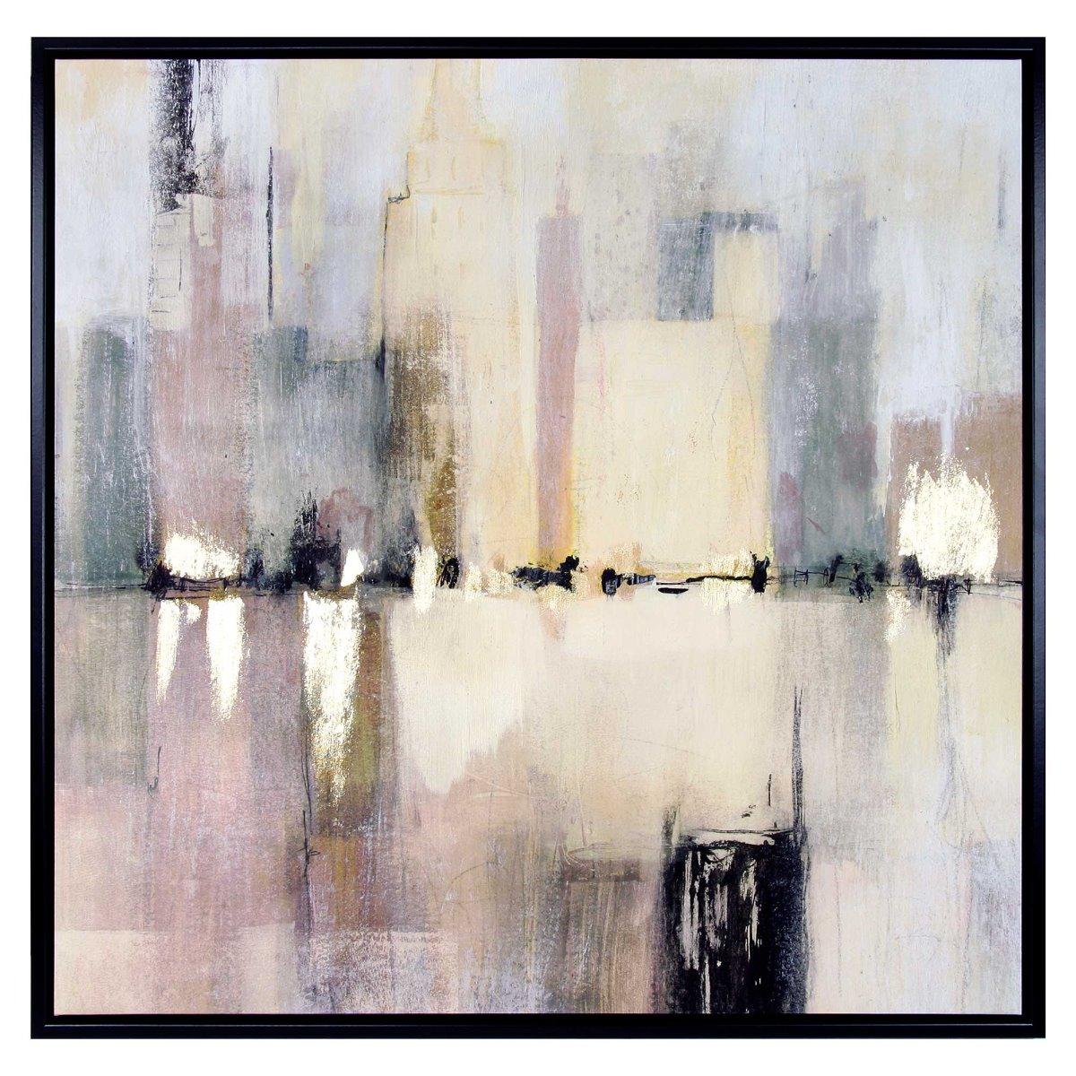 Design. The Golden City Picture depicts a subtle metropolitan skyline, washed in hues of grey, pink and gold to produce a sophisticated piece. The bold black frame helps to draw the eye to the art further, creating an interesting addition to your interior setting.