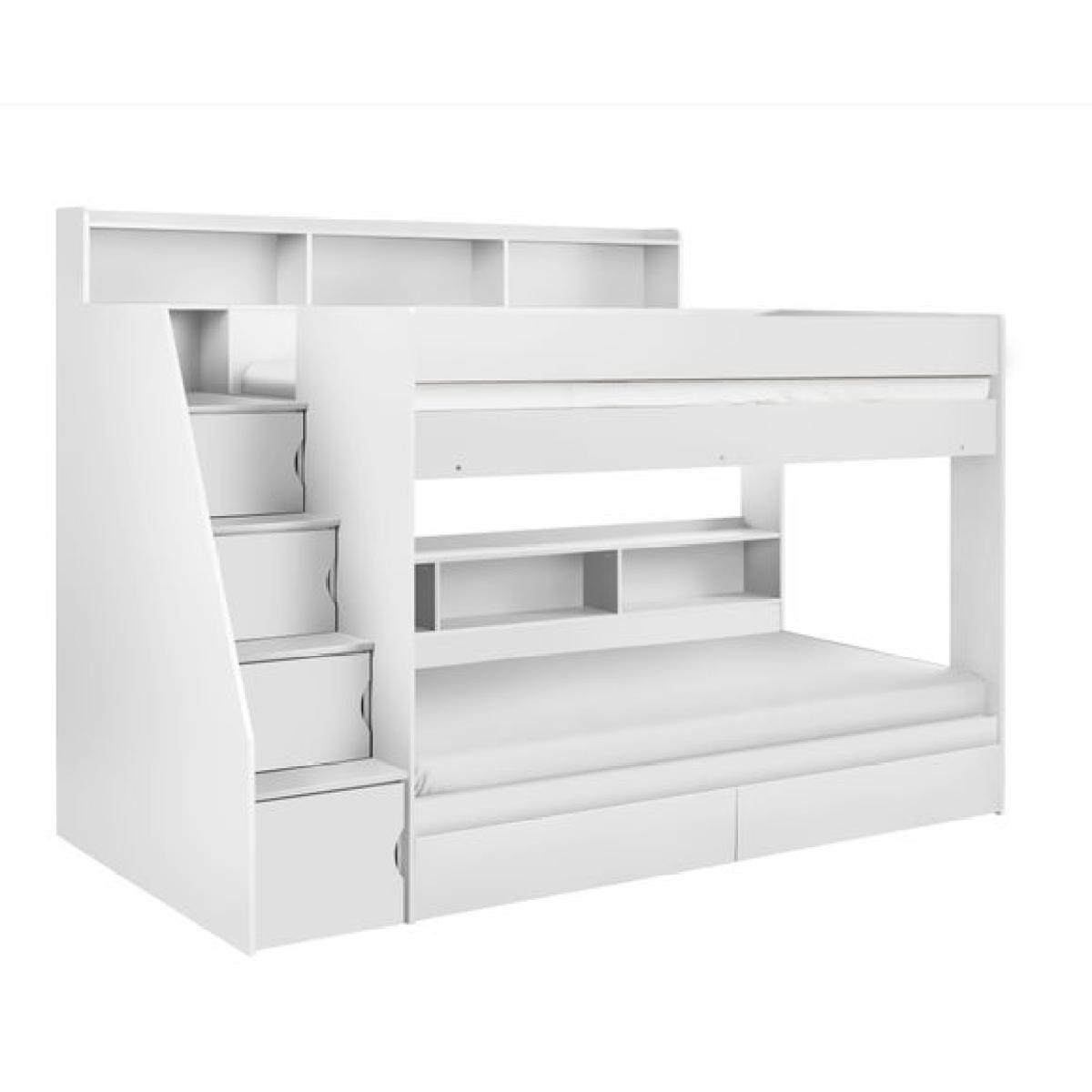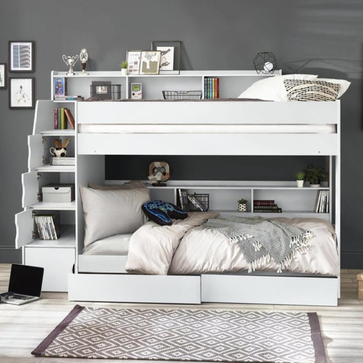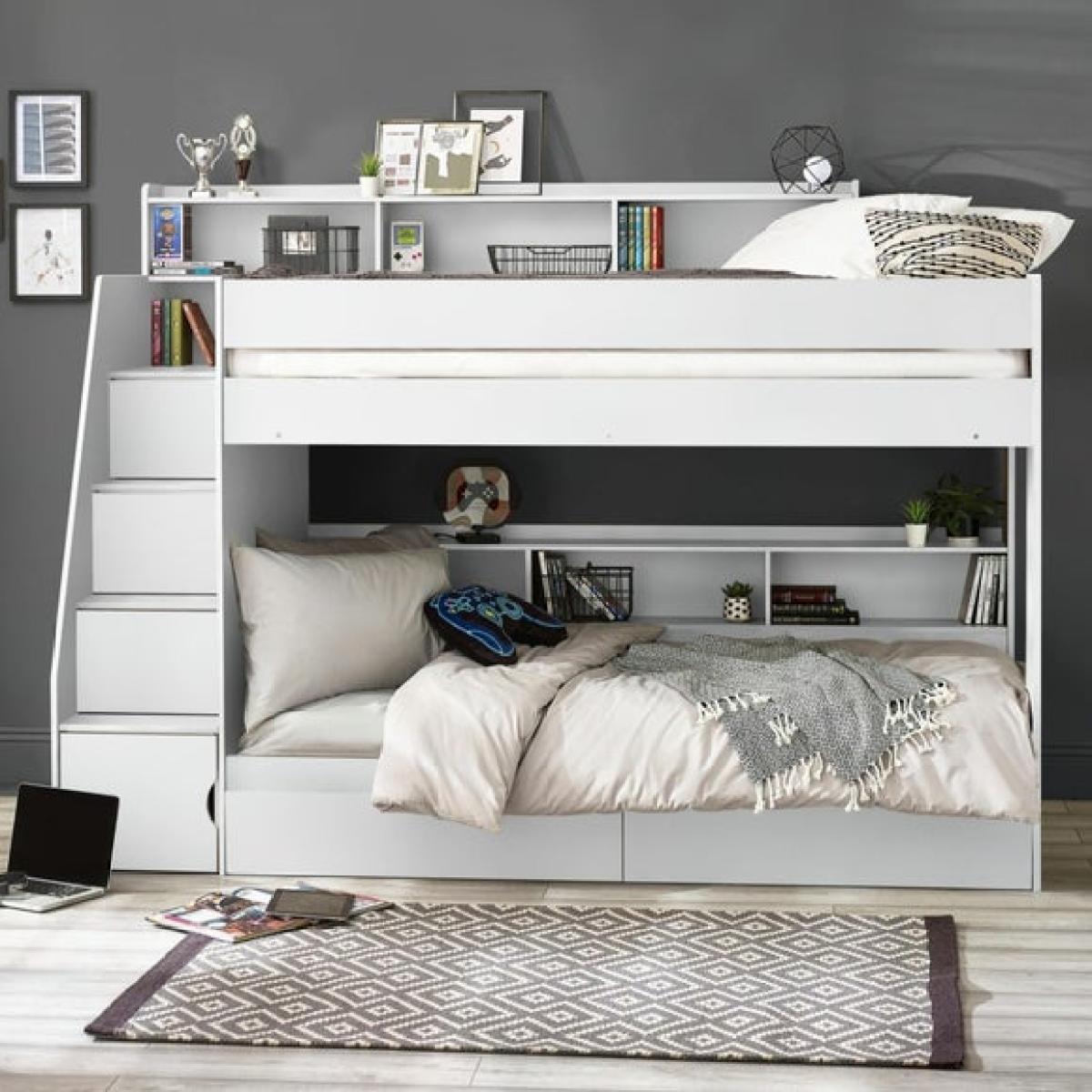 The Camelot staircase bunk is a practical yet stylish choice for family spaces that balance function with modern design. I love its clean white finish, which makes it versatile enough to complement a wide range of interior styles, from Scandi to contemporary. It’s perfect for maximise space in smaller rooms, especially when paired with neat storage solutions like under-bed drawers or organisational bins on the shelves. To style around it, consider adding colour-coordinated bedding and playful accessories on the top bunk to create visual interest, while keeping the overall look minimal and clutter-free. For interiors aiming for a cosy yet practical vibe, it works well in children’s bedrooms with soft, neutral palettes or in shared spaces that need clever storage without compromising style.