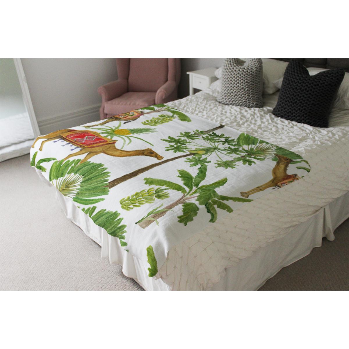 Camels Palm Trees Blanket - Green