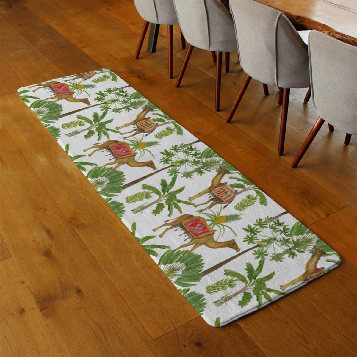 I love this camels and palms runner rug for its playful, tropical vibe that can add character to a variety of interiors. It works particularly well in hallways or narrow spaces where a pop of colour and pattern can really make an impact. Its green tones are versatile enough to complement both modern and more traditional schemes, especially those inspired by coastal or boho decor. Practical styling tips include layering it over neutral flooring to make it stand out, or pairing with indoor plants and wicker furniture for a cohesive, relaxed look. It’s also a great option for creating visual interest without overwhelming a room, thanks to its balanced design and manageable size.