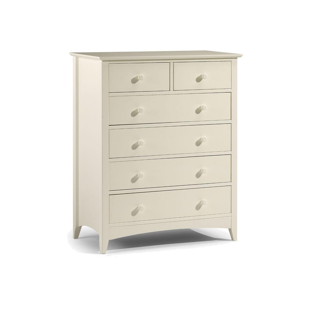 Classically designed in a shaker style, this chest of drawers features a subtle off-white, painted finish. This chest boasts generous storage with four spacious drawers and two smaller drawers. Traditional, this self-assembly chest of drawers is crafted from MDF with the sides, backs and front plinths constructed from solid wood. Installation Note: This product should be fixed to a wall using a wall fastener. Please note, unfortunately we cannot deliver this item to the Channel Islands.